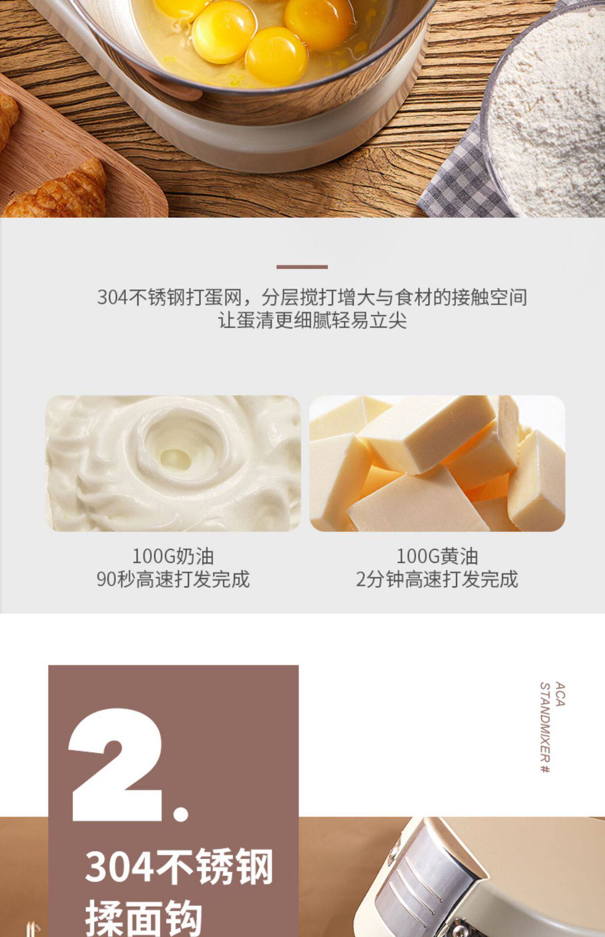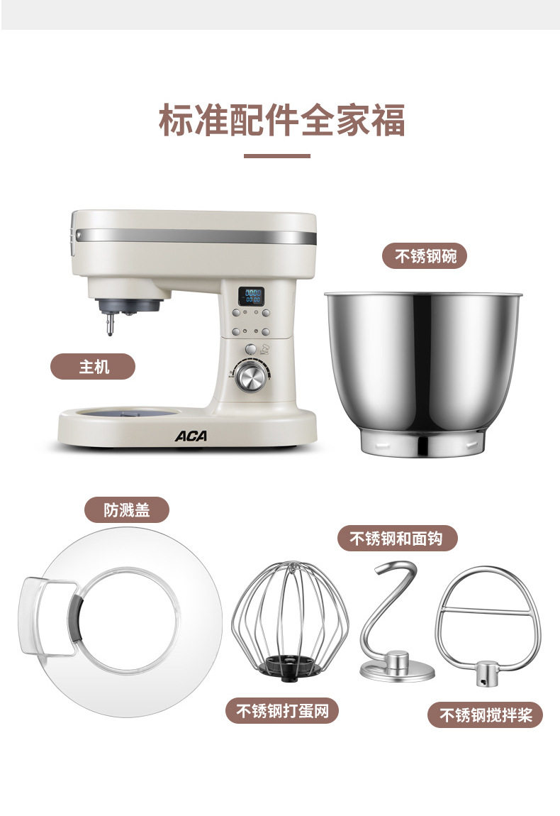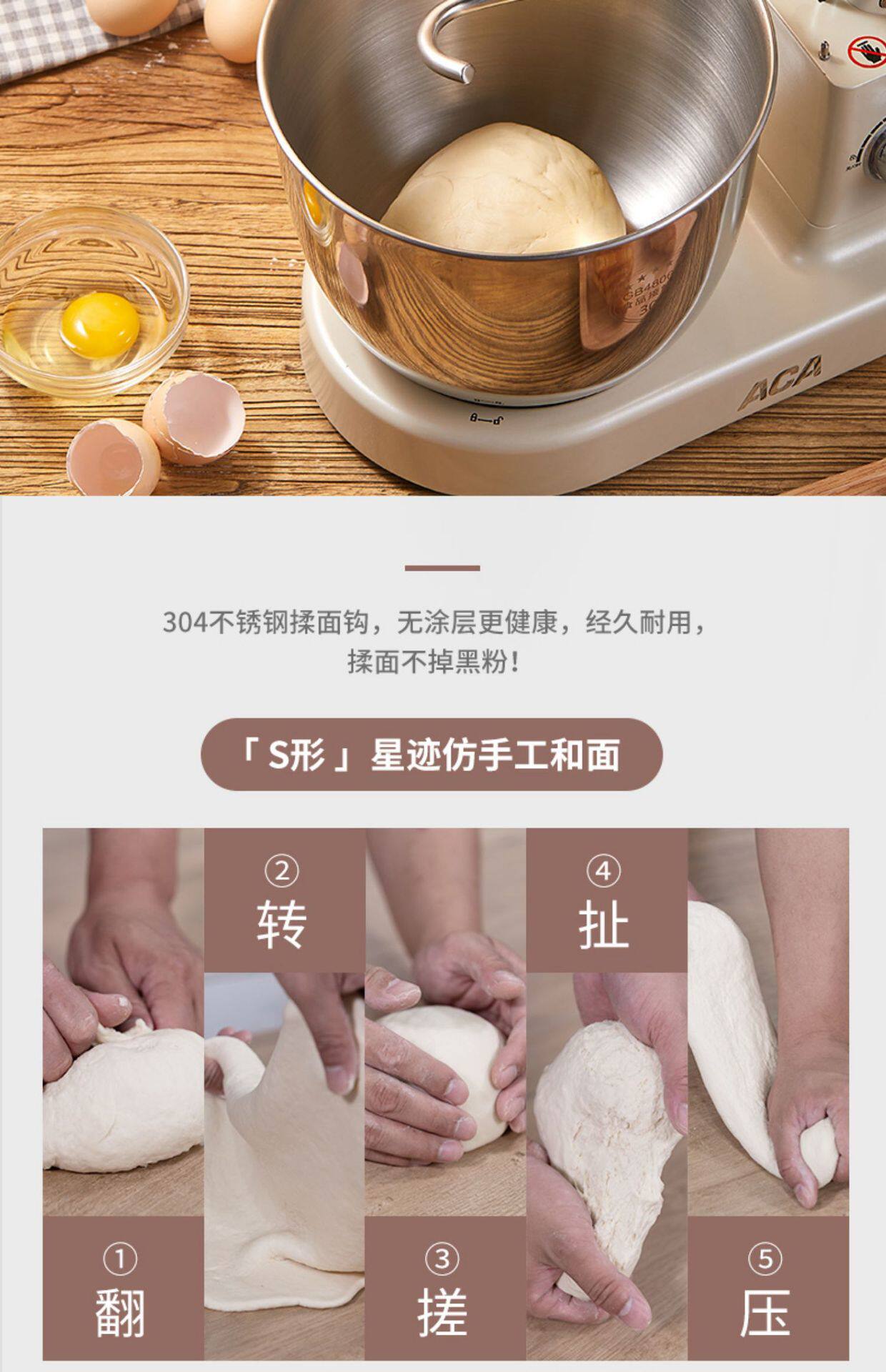Aca Chef Machine All-Metal Household Silent Dough Mixer Kneading Machine Dough Proofing Machine Small Multi-Function Commercial E