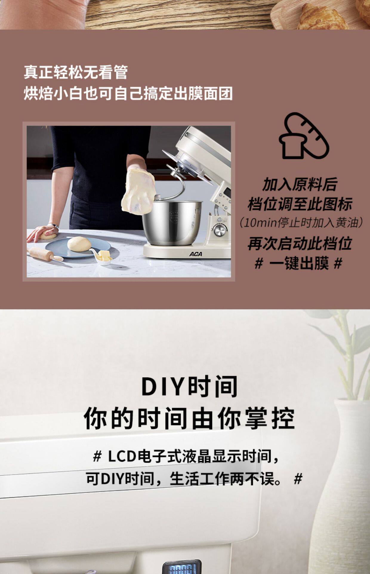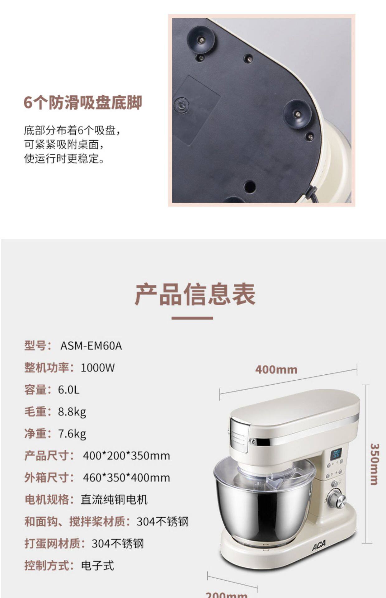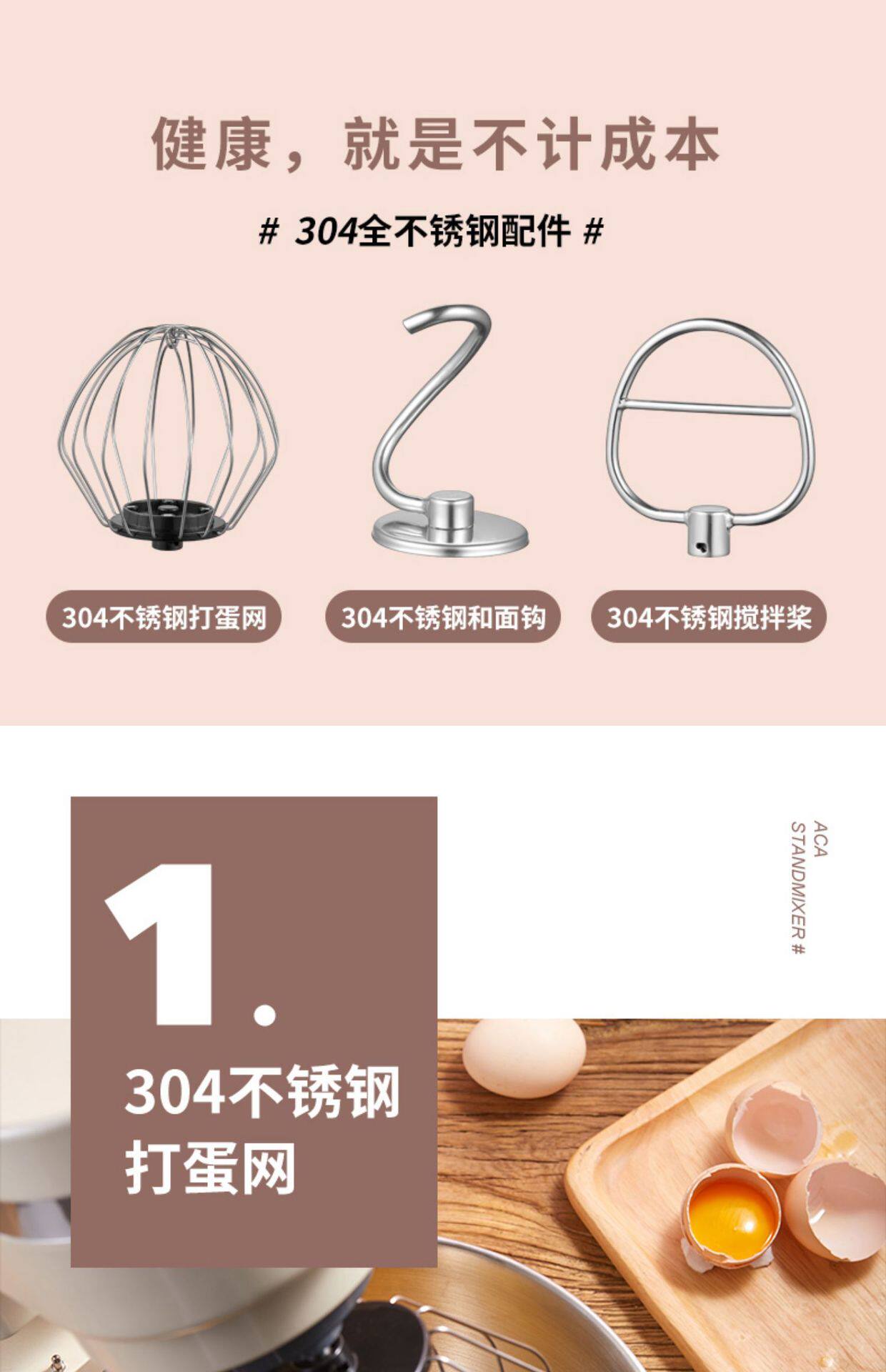 Aca Chef Machine All-Metal Household Silent Dough Mixer Kneading Machine Dough Proofing Machine Small Multi-Function Commercial E