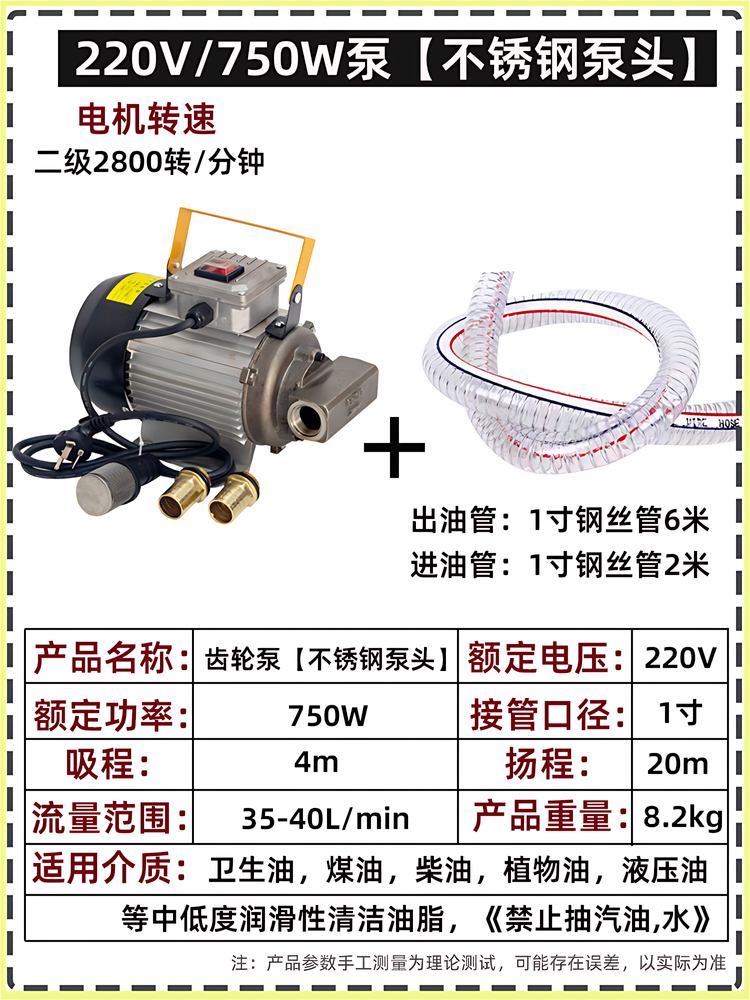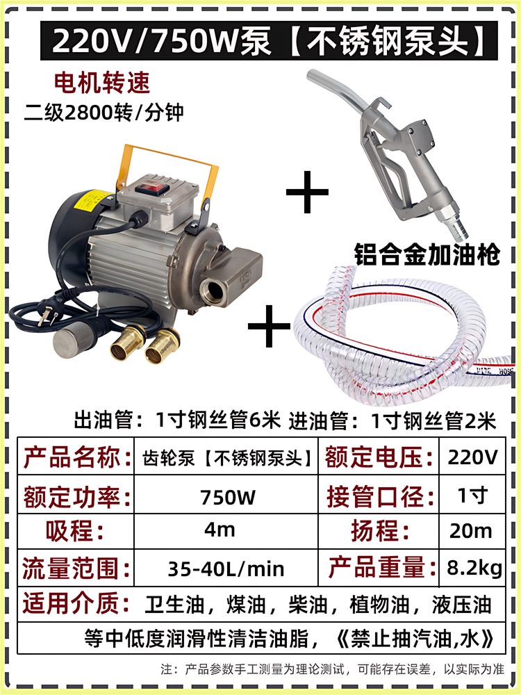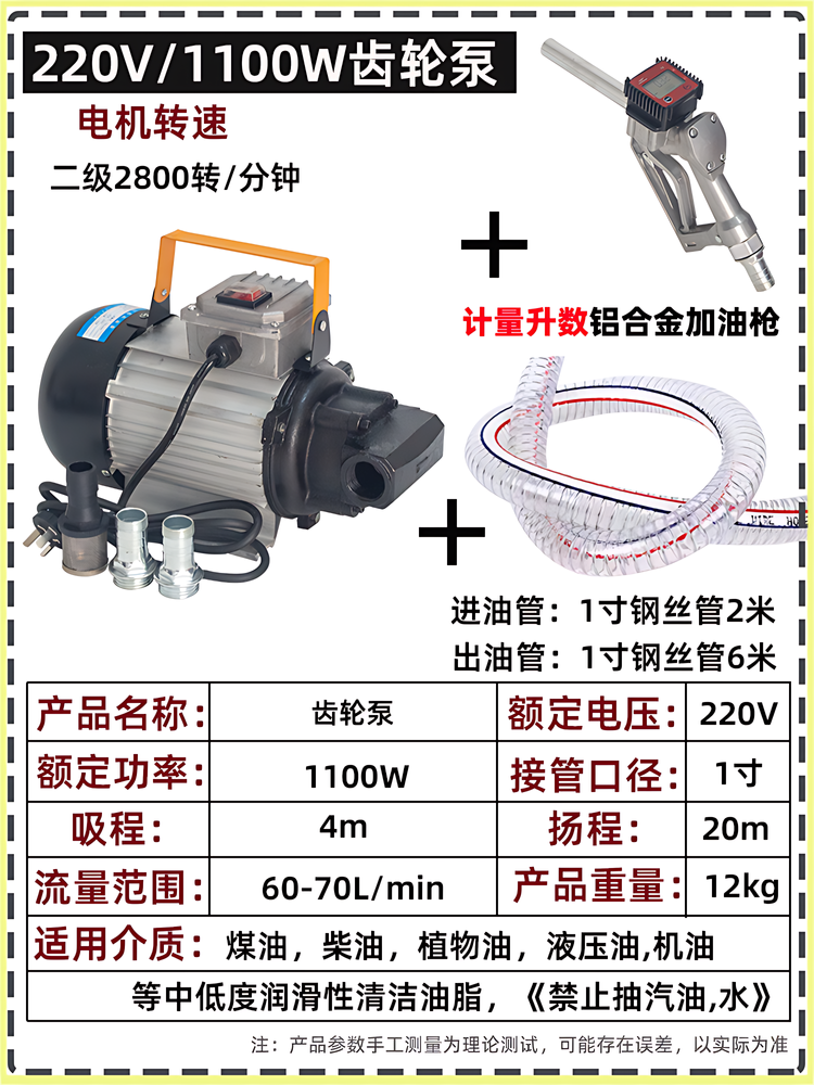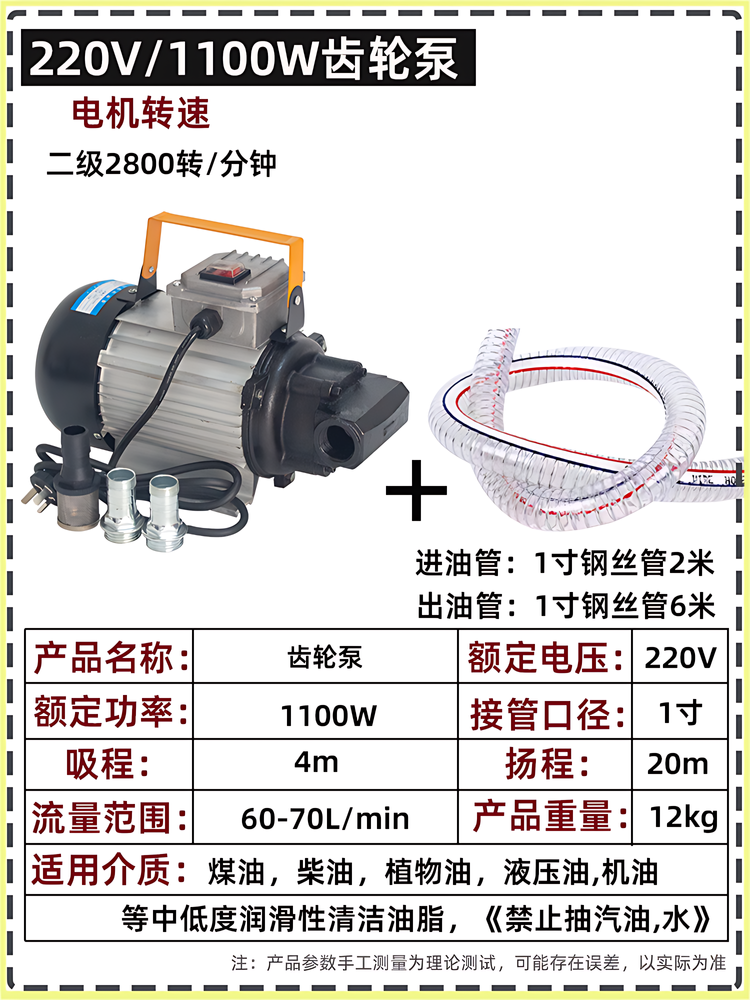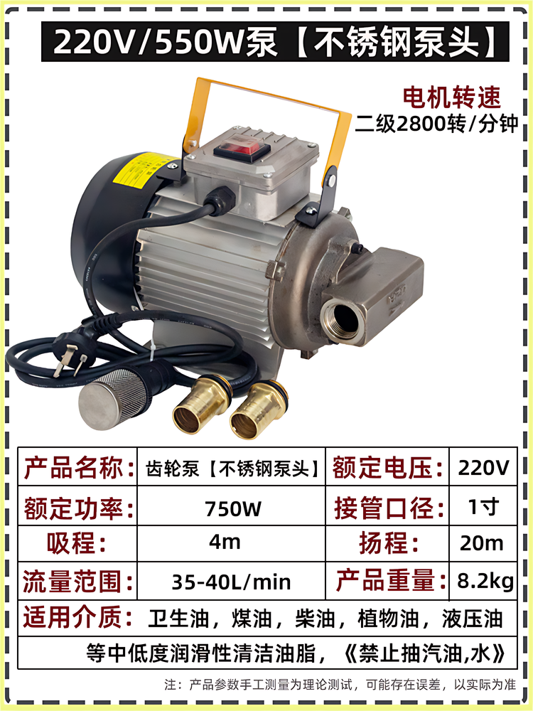 Color Classification 220V Gear Pump[750W],220V Gear Pump[750W]With Front and Back Oil Pumping,220V Gear Pump[750W]+[Oil Pipe 8m],220V Gear Pump[750W]With Front and Back Oil Pumping +[Oil Pipe 8m],220V Gear Pump[750W]+[Oil Pipe 8m]+[Oil Gun],220V Gear Pump[750W]With Front and Back Oil Pumping +[Oil Pipe 8m]+[Oil Gun],220V Gear Pump[750W]+[Oil Pipe 8m]+[Measuring Oil Gun],220V Gear Pump[750W]With Front and Back Oil Pumping +[Oil Pipe 8m]+[Measuring Oil Gun],220V Gear Pump[1100W],220V Gear Pump[1100W]+[Oil Pipe 8m],220V Gear Pump[1100W]+[Oil Pipe 8m]+[Oil Gun],220V Gear Pump[1100W]+[Oil Pipe 8m]+[Measuring Oil Gun],220V Gear Pump[Low Speed and High Torque 1100W],220V Gear Pump[Low Speed and High Torque 1100W]+[Oil Pipe 8m],220V Gear Pump[Low Speed and High Torque 1100W]+[Oil Pipe 8m]+[Oil Gun],220V Gear Pump[Low Speed and High Torque 1100W]+[Oil Pipe 8m]+[Measuring Oil Gun],12V Gear Pump[550W],12V Gear Pump[550W]+[Oil Pipe 8m],12V Gear Pump[550W]+[Oil Pipe 8m]+[Oil Gun],12V Gear Pump[550W]+[Oil Pipe 8m]+[Measuring Oil Gun],24V Gear Pump[550W],24V Gear Pump[550W]+[Oil Pipe 8m],24V Gear Pump[550W]+[Oil Pipe 8m]+[Oil Gun],24V Gear Pump[550W]+[Oil Pipe 8m]+[Measuring Oil Gun],220V Stainless Steel Gear Pump[750W],220V Stainless Steel Gear Pump[750W]+[Oil Pipe 8m],220V Stainless Steel Gear Pump[750W]+[Oil Pipe 8m]+[Oil Gun],220V Stainless Steel Gear Pump[750W]+[Oil Pipe 8m]+[Measuring Oil Gun]