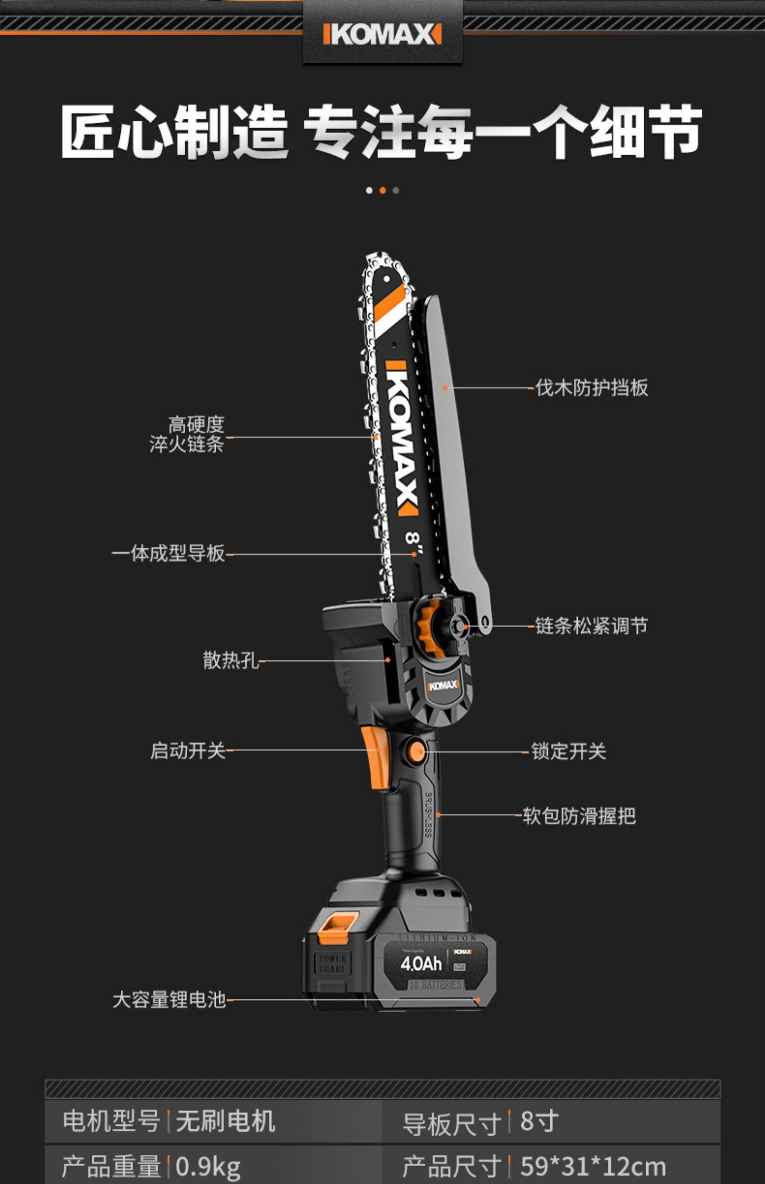 German Premium Imported Brushless Electric Chainsaw, Small Handheld Rechargeable Lithium Battery Logging Saw, Electric Chain Saw