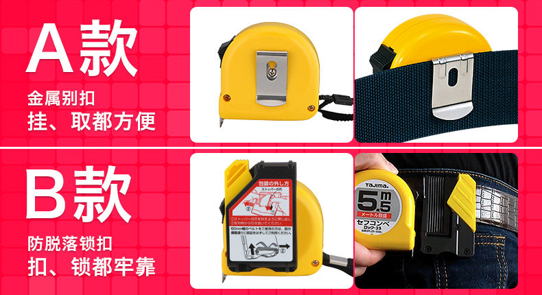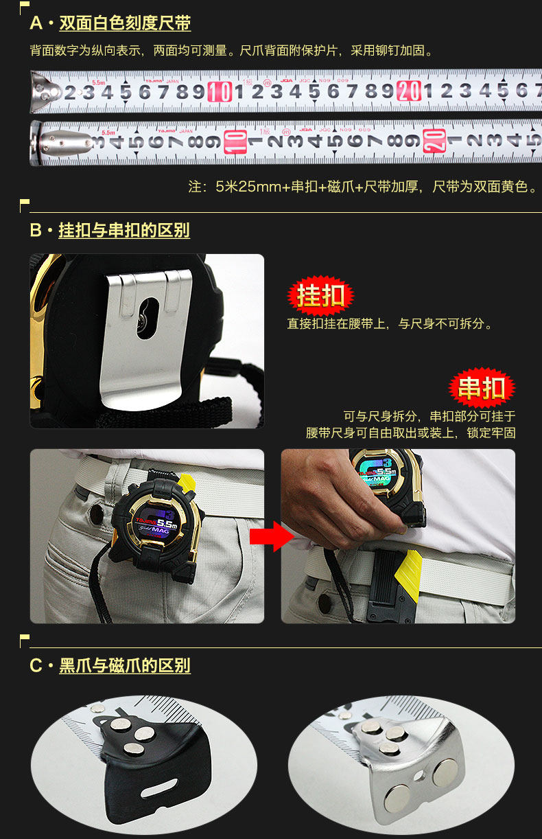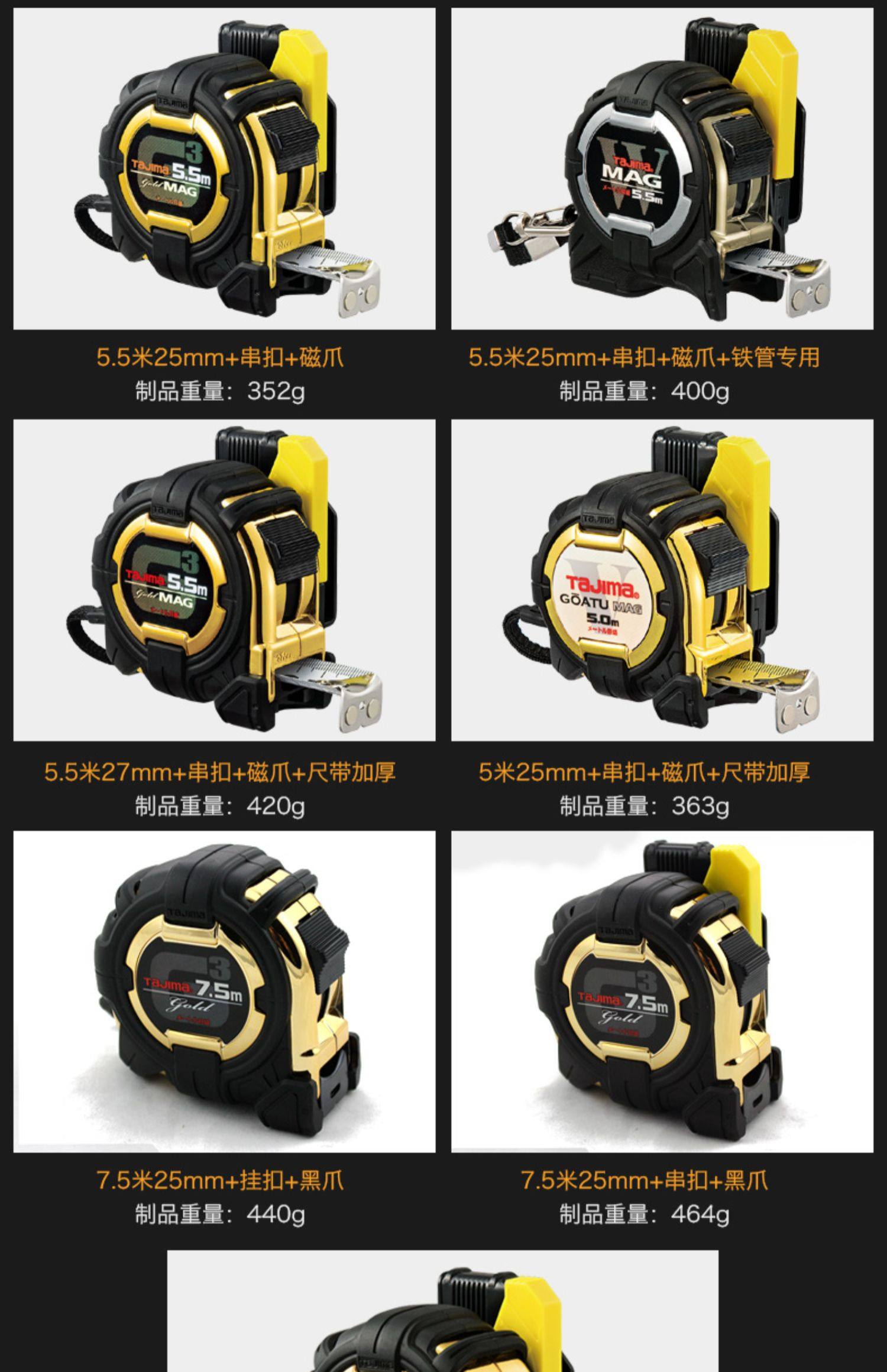 Color Classification [Type a][5.5m*19mm],[Type a][5.5m*25mm],*[Type a][7.5m*25mm],[Type a][5.5m*25mm]+Magnetic Ruler Claw,[Section B][5.5m*25mm],[Section B][7.5m*25mm],[Section B][5.5m*25mm]+Magnetic Ruler Claw,#[Section B][7.5m*25mm]+Magnetic Ruler Claw,[Section B][5.0m*25mm]+Magnetic Ruler Claw & Thickened Ruler Tape,[Section B][5.5m*27mm]+Magnetic Ruler Claw & Thickened Ruler Tape,[Section B][5.5m*25mm]+Magnetic Rulers & Steel Pipe Adsorption