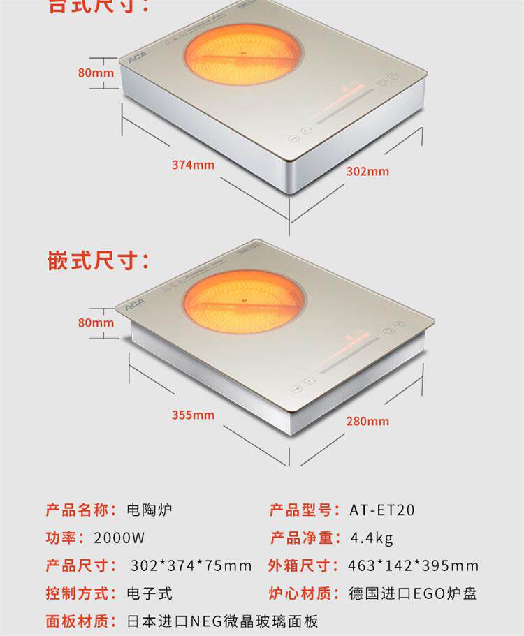 Aca/North American Appliances At-Et20 Electric Ceramic Stove for Home Use, Tabletop and Built-In, High Power, German Core, Japanese Panel