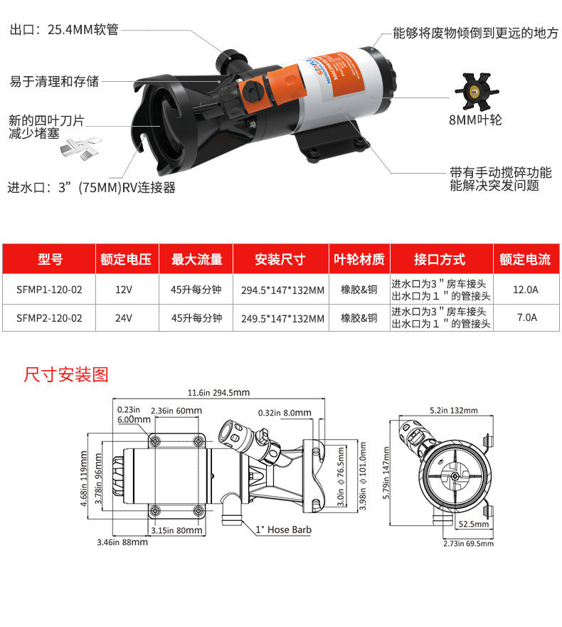 German Premium Imported Seafo02 Series Sewage Pump Rv Water Tank Pump Toilet Pump Sewage Pump Yacht 12V2