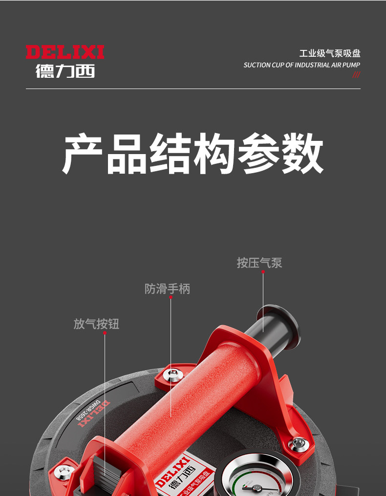 German Premium Imported Delixi Glass Suction Cup Porcelain Heavy-Duty Suction Lifter Electric Fixture for Large Panels