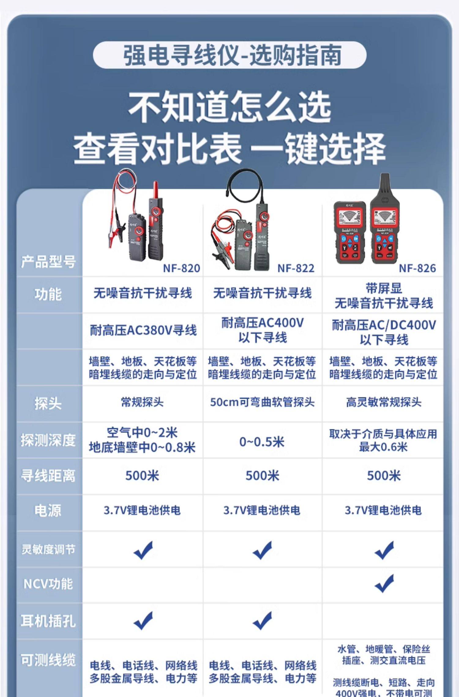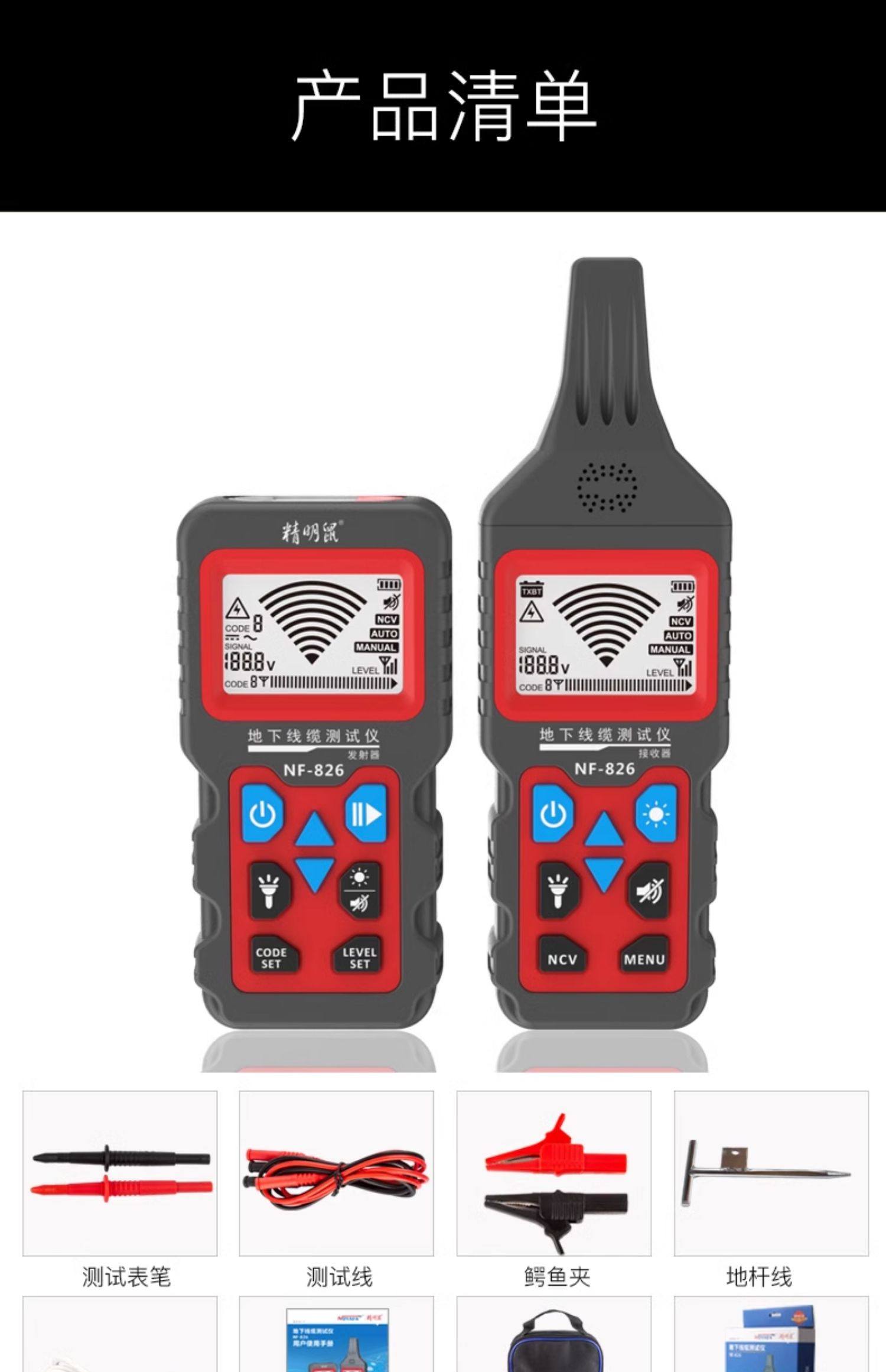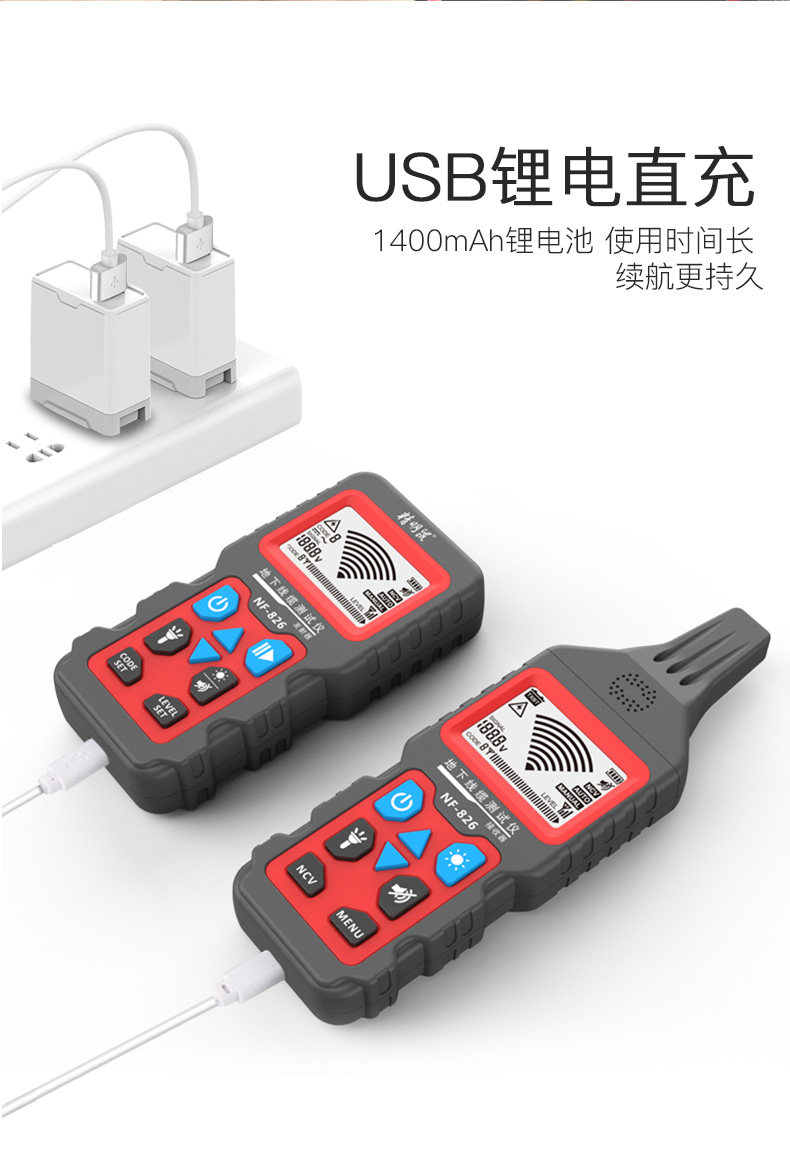 Color Classification Nf-822 Anti-Interference Forced Electricity 380V (Depth Measured 0.5m),Nf-820 Anti-Interference Forced Electricity 380V (Depth Measured 2m),Nf-826 Wire and Cable Detector Withstand Voltage 400V (Can Measure Underground Short Circuit Breakpoint),Nf-801R Second Generation Upgraded Version - Telephone Search Cable - Network Cable - Cable Wire,Nf-801B Second Generation Upgraded Version - Same Function,Different Colors,Nf-801B Set-Rechargeable Recycling-Anti-Burn Upgraded Version,Nf-801R Set-Rechargeable Recycling-Anti-Burn Upgraded Version,Nf-811 Can Find Wires - Test and Break - Measure Four-Core Network Cables,Nf-168S--Anti-Interference and Noise-Free--Three Line Finding,Nf-168V--With Red Light--Three Kinds of Line Finding,Nf-268 Anti-Interference - Poe Live Cable Finding - Four-Core Network Cable Measurement,268 Anti-Interference-Charging Set-Rechargeable Circular Use