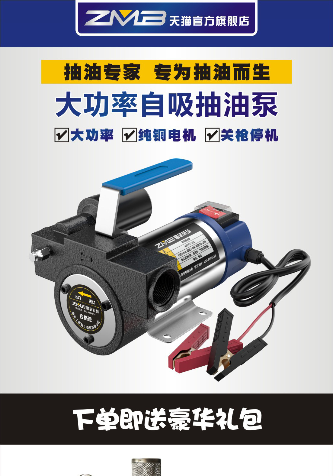 German Premium Imported Zmb Self-Stop Electric Oil Pump 12V24V220V Self-Priming Pump Oil Pump Diesel