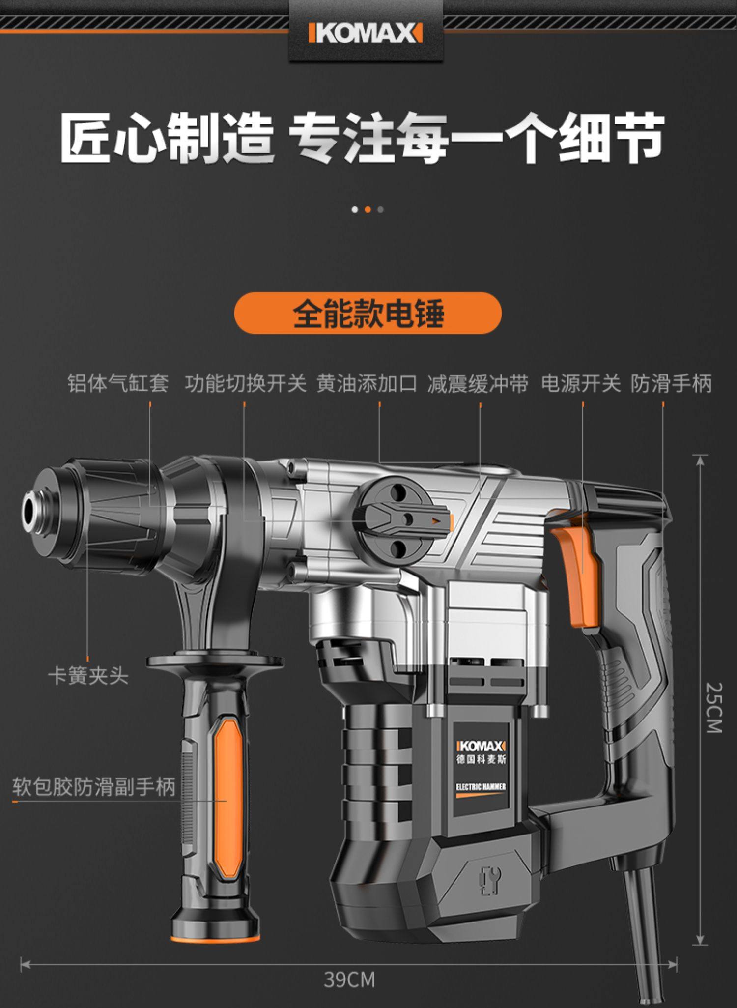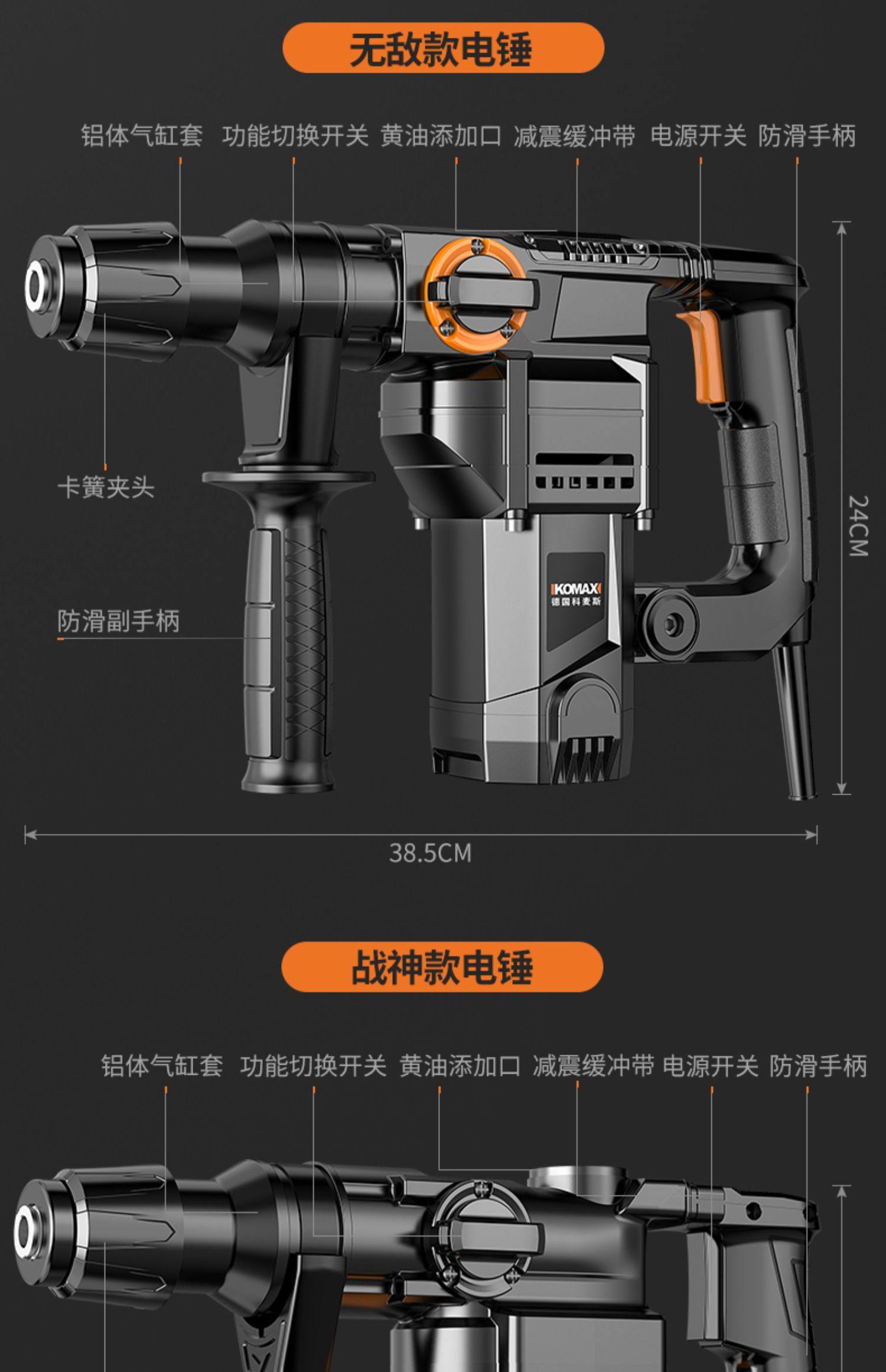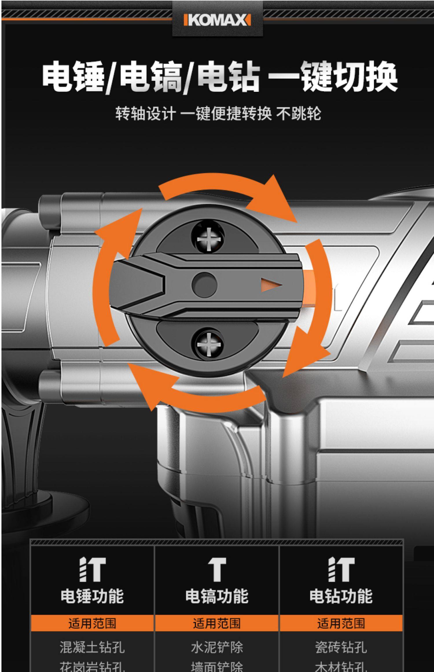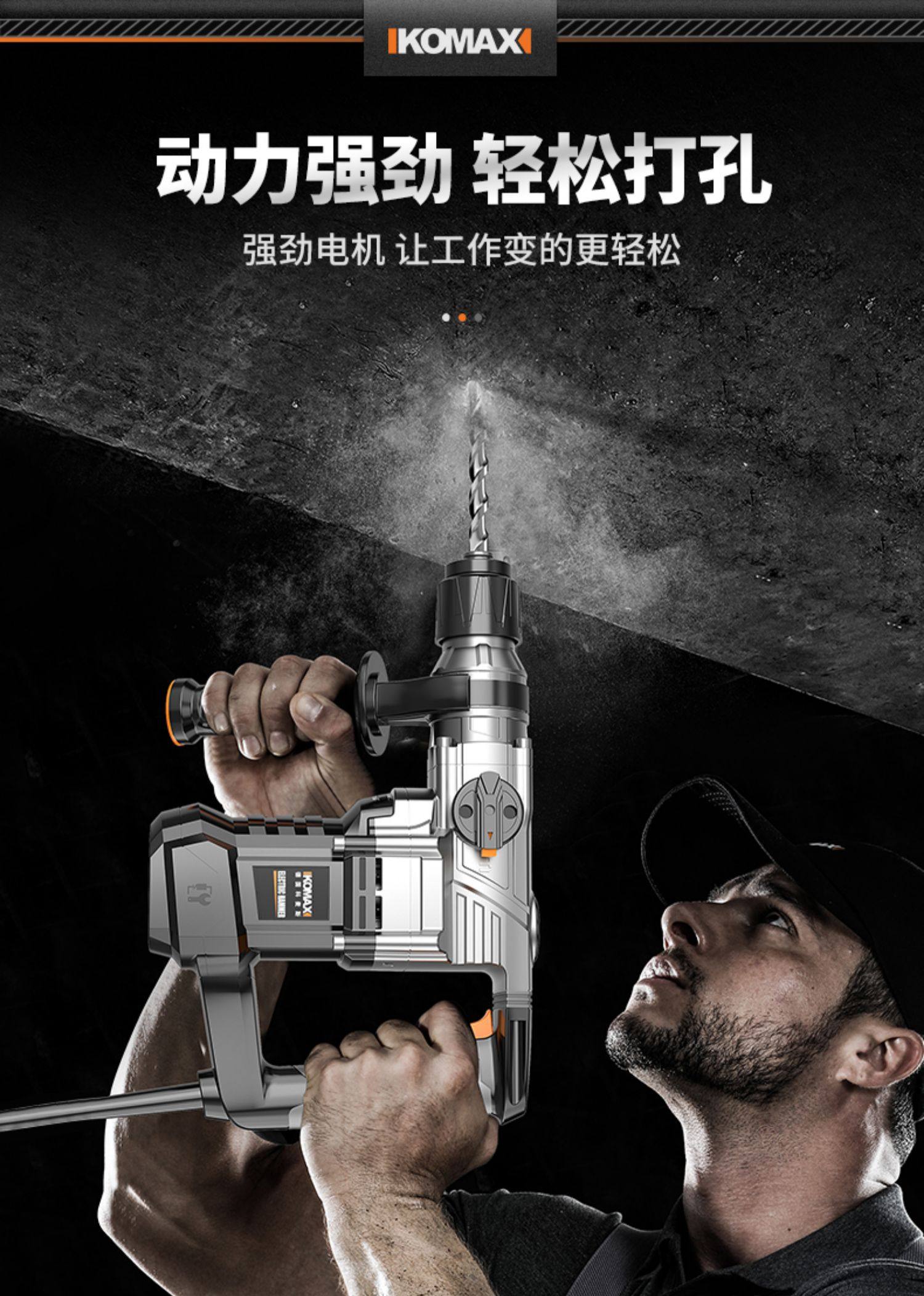 German Premium Imported Electric Hammer, Electric Pick, Power Rechargeable Hammer, Lightweight Impact Drill, Dual-Purpose for Concrete, Electric Pick for Home Use