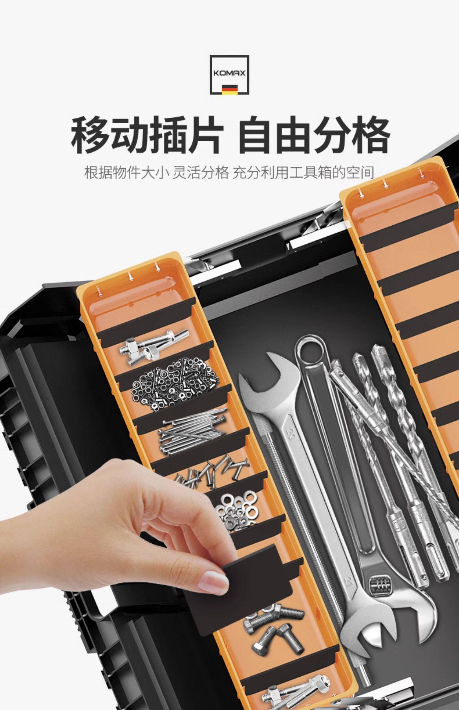 German Premium Imported Large Hardware Toolbox, Industrial-Grade Portable Multi-Functional Tool Box for Home and Car Use