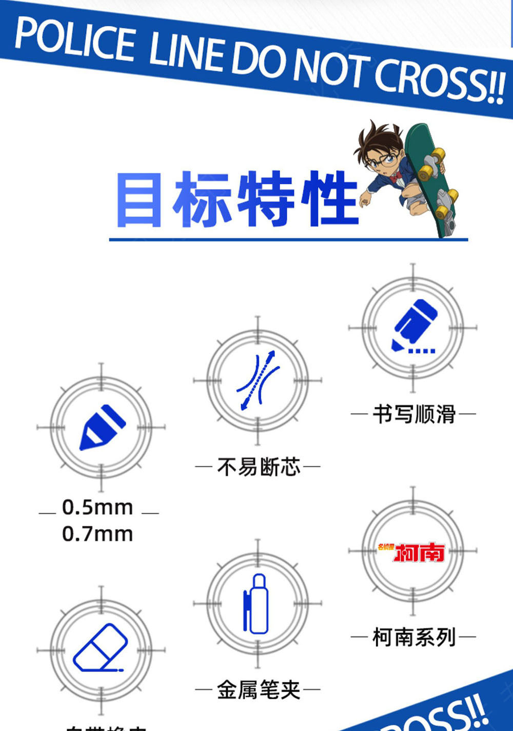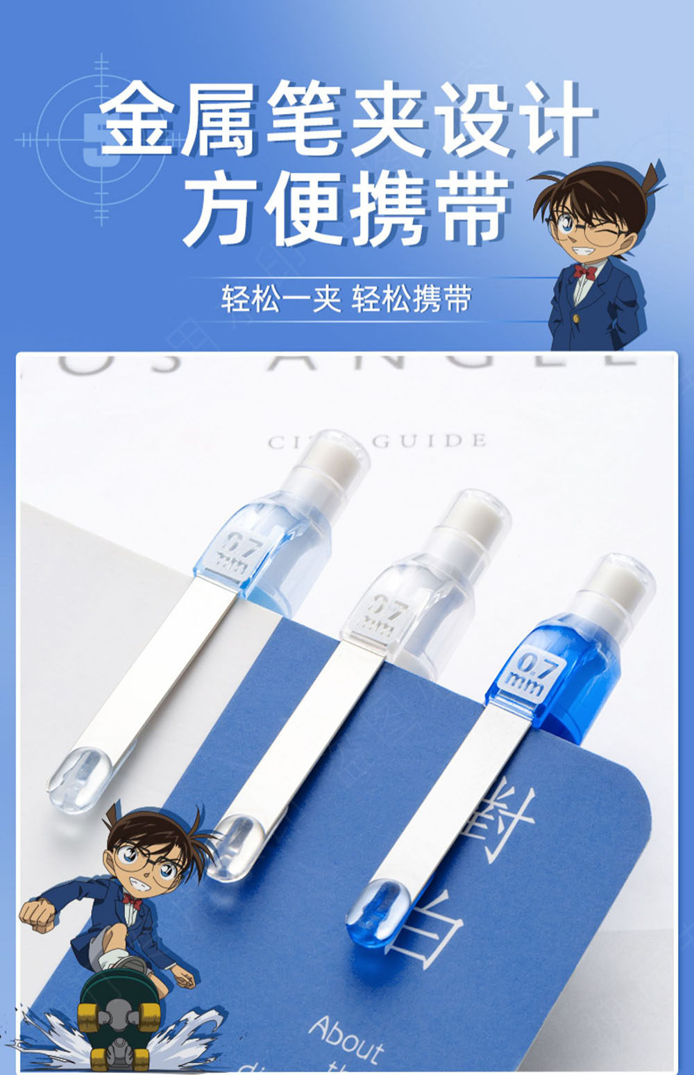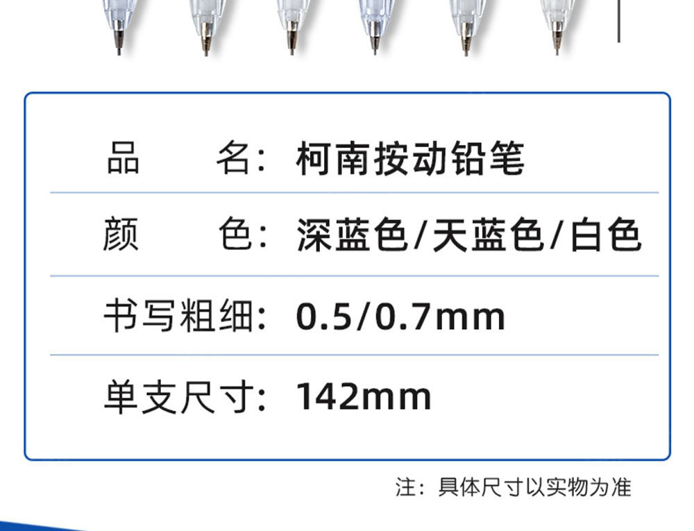 Color Classification 0.5 mm------------------------------------------,[Conan] Sky Blue 1 Piece, Get 1 Eraser + Lead Core,【Conan】Sky Blue 3-Piece Set, Includes 1 Random Style Eraser + Lead Refills,【Conan】Sky Blue 6-Piece Set - Includes 1 Random Style Eraser + Lead Refills,[Kidd] 1 White Piece, Get 1 Random Style Eraser + Lead Core,【Kidd】White 3-Piece Set, Includes 1 Random Style Eraser + Lead Refills,【Kidd】White 6-Piece Set, Includes 1 Random Style Eraser + Lead Refills,【Kidd】Deep Blue Pen (Single) - Includes 1 Random Style Eraser + Lead Refills,【Kidd】Deep Blue 3-Piece Set, Includes 1 Random Style Eraser + Lead Refills,【Kidd】Deep Blue 6-Piece Set, Includes 1 Random Style Eraser + Lead Refills,0.7 mm-----------------------------------------------,【Conan】Sky Blue Pen (Single) - Includes 1 Random Style Eraser + Lead Refills,【Conan】Sky Blue 3-Piece Set - Includes 1 Random Style Eraser + Lead Refills,【Conan】Sky Blue 6-Piece Set - Includes 1 Random Style Eraser + Lead Refills,【Kidd】White 1 Piece - Includes 1 Random Style Eraser + Lead Refills,【Kidd】White 3-Piece Set - Includes 1 Random Style Eraser + Lead Refills,【Kidd】White 6-Piece Set - Includes 1 Random Style Eraser + Lead Refills,【Kidd】Deep Blue 1 Piece - Includes 1 Random Style Eraser + Lead Refills,【Kidd】Deep Blue 3-Piece Set - Includes 1 Random Style Eraser + Lead Refills,【Kidd】Deep Blue 6-Piece Set - Includes 1 Random Style Eraser + Lead Refills