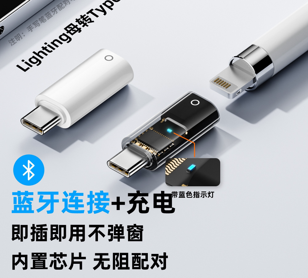 Suitable for Apple First-Generation Pen Bluetooth Connection iPad 10 Tablet Apple Pencil Charging Adapter Type-C to Lightning Interface Converter Second-Generation Capacitive Pen Accessories Touch Pen