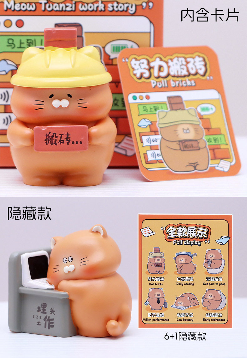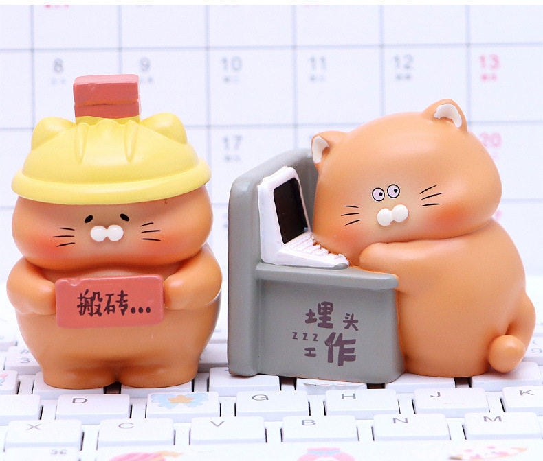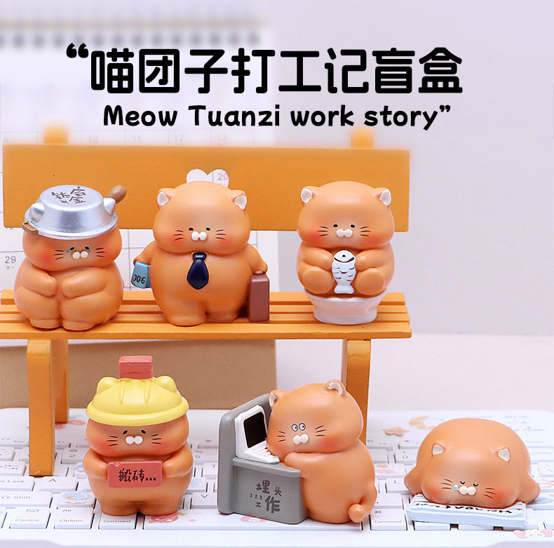 Cartoon Super Cute Cat Dumpling's Work Diary Blind Box Creative Work-Related Lazy Cat Daily Life Figurine Lazy Little Ornament