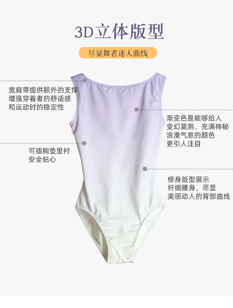 Danshige New Dance Costume Ballet Dance Leotard Gradient Blue-Purple Gymnastics Suit Yoga Body Examination Suit