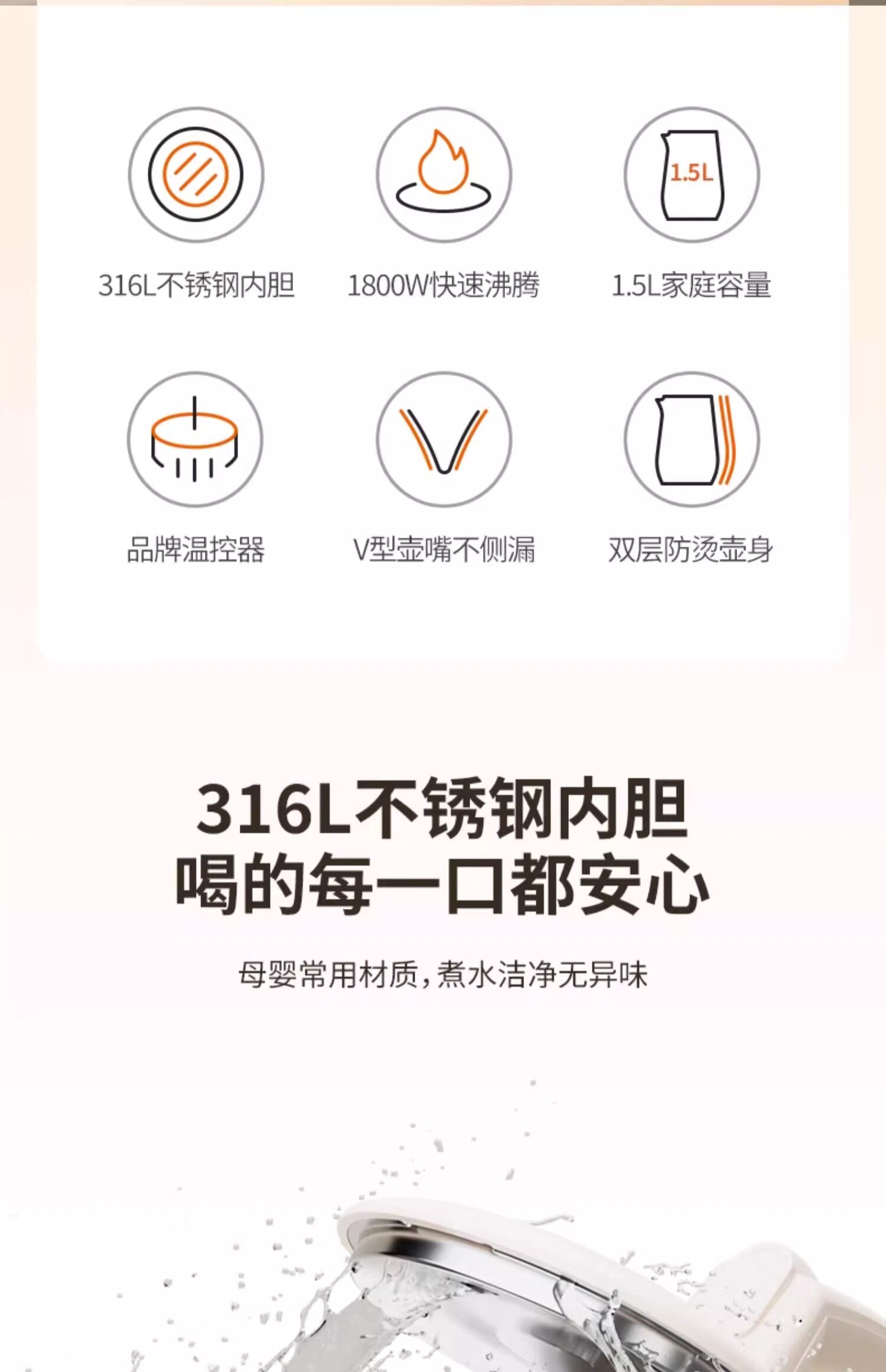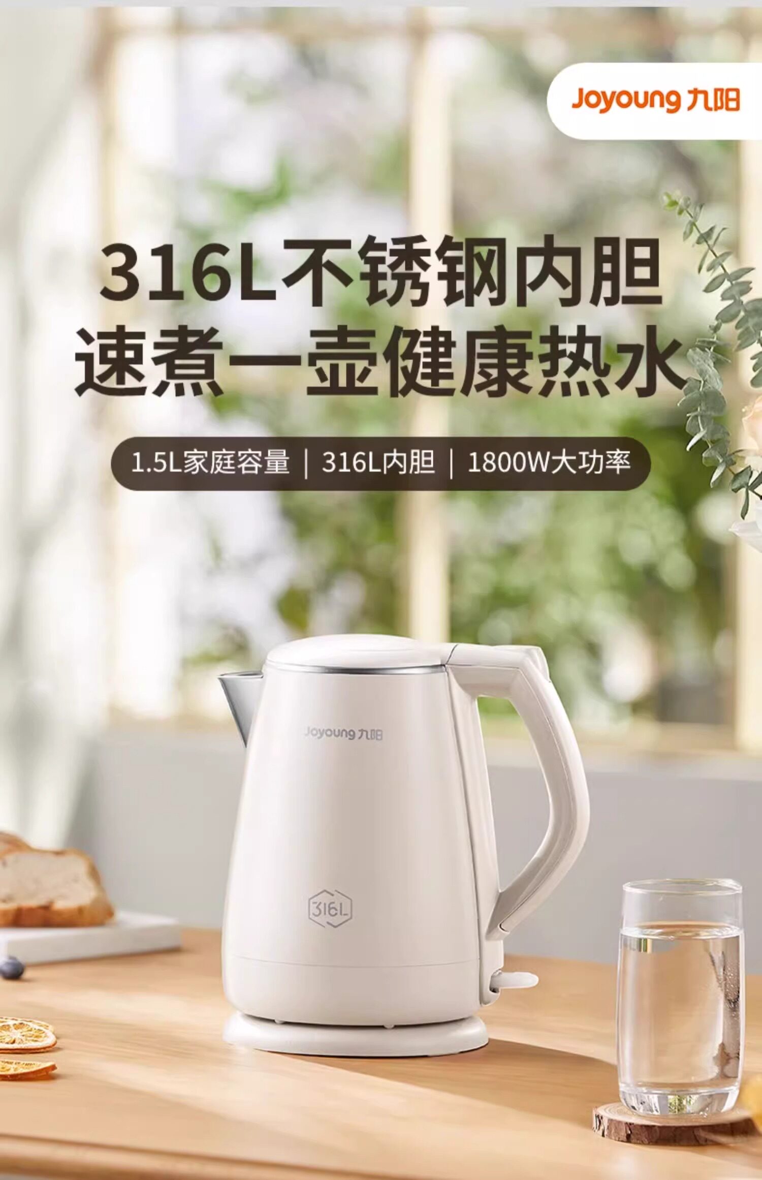 Joyoung Electric Kettle 316L Stainless Steel Food-Grade Electric Kettle for Home Use with Automatic Shut-Off Electric Kettle