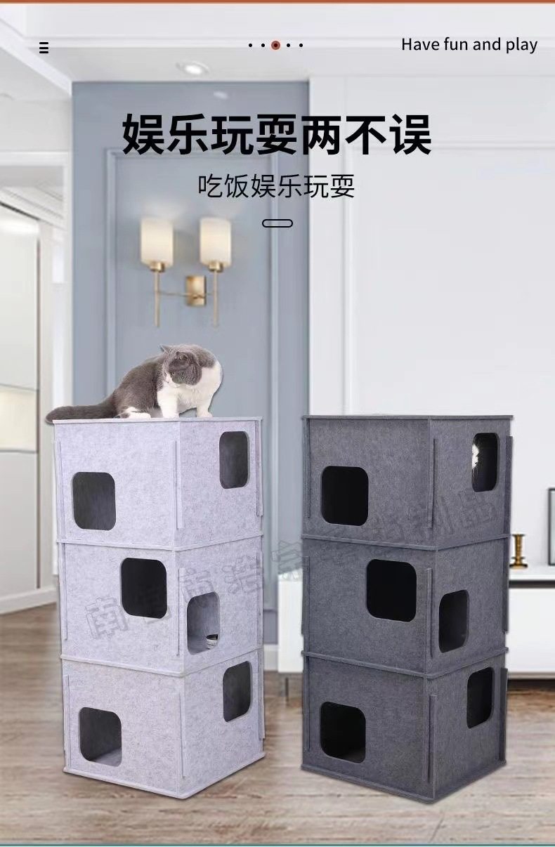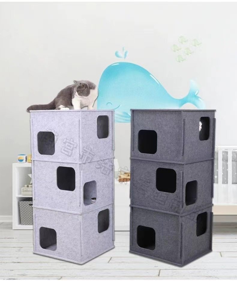Stacking Fun Cat Maze Cat Tunnel Cat Nest Toy Climbing Frame Hide-And-Seek Hole Felt Cat Scratching Board Educational Game