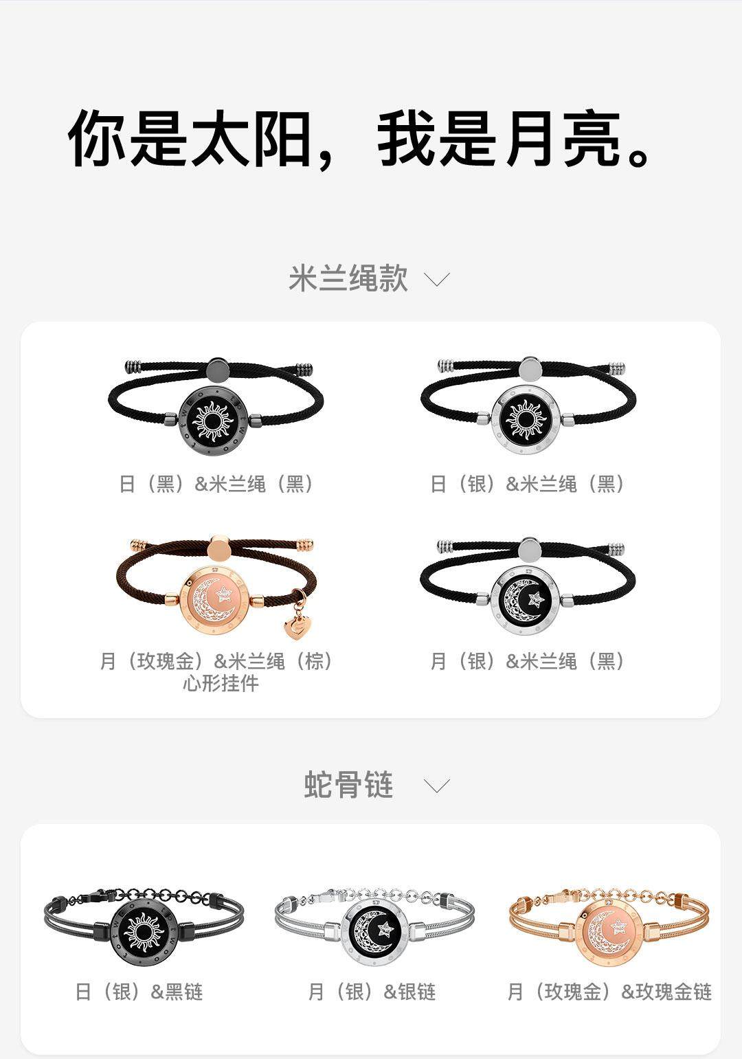 Color Classification 【Qixi Festival Promise Gift Box】Sun & Moon Milan Rope Silver,【Qixi Festival Promise Gift Box】Sun & Moon Milan Rope Black Gold,[Qixi Vow Gift Box] Snake Bone Chain Black Gold,【Couple's Set】Sun & Moon Interstellar Shimmer Beaded Bracelet,【Couple's Set】Sun & Moon Ink Wash Painting Style Beaded Bracelet,【Couple's Set】Sun & Moon Phantom Black Gold Beaded Bracelet,【Couple's Set】Sun & Moon Phantom Silver Beaded Bracelet,[Couple Pair] Sun and Moon Black Gold Pendant,【Couple's Pair】Sun & Moon Sterling Silver Pendants,[Couple Pair] Snake Bone Chain Black Silver,[Couple Pair] Figaro Chain Black Gold,[Couple Pair] Figaro Chain Black Silver,[Men's Single] Milan Rope Black-Sun Style,[Men's Single] Milan Rope Gold-Moon Yang Style,[Couple Pair] Leather Rope Snake Bone Chain,[Couple Pair] Snake Bone Chain Black Gold,[Couple Pair] Milan Rope Black Gold,【Couple's Set】Milan Rope Silver
