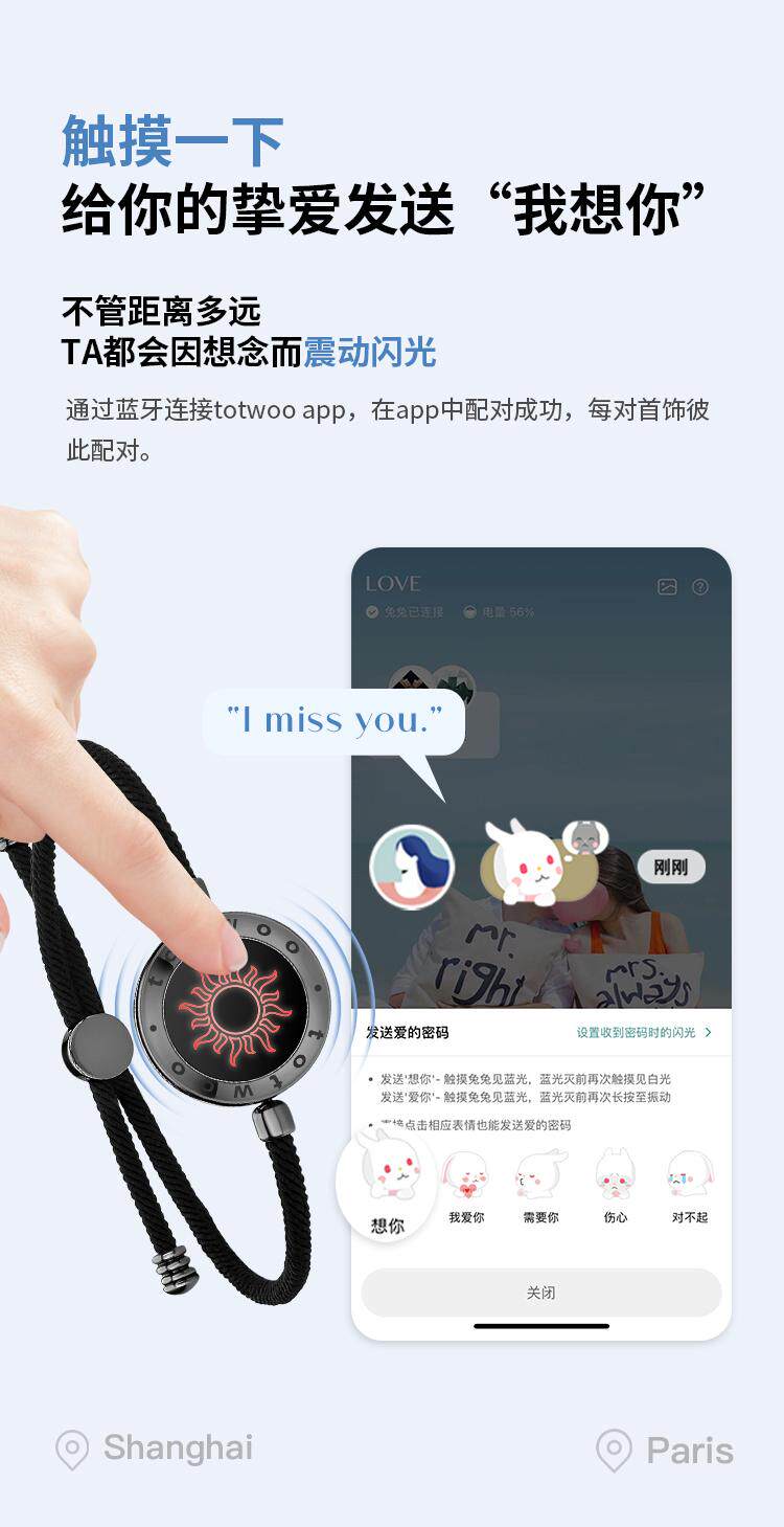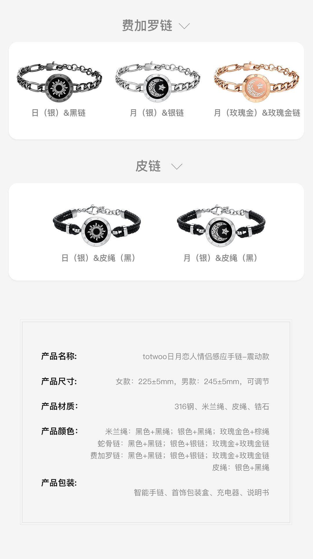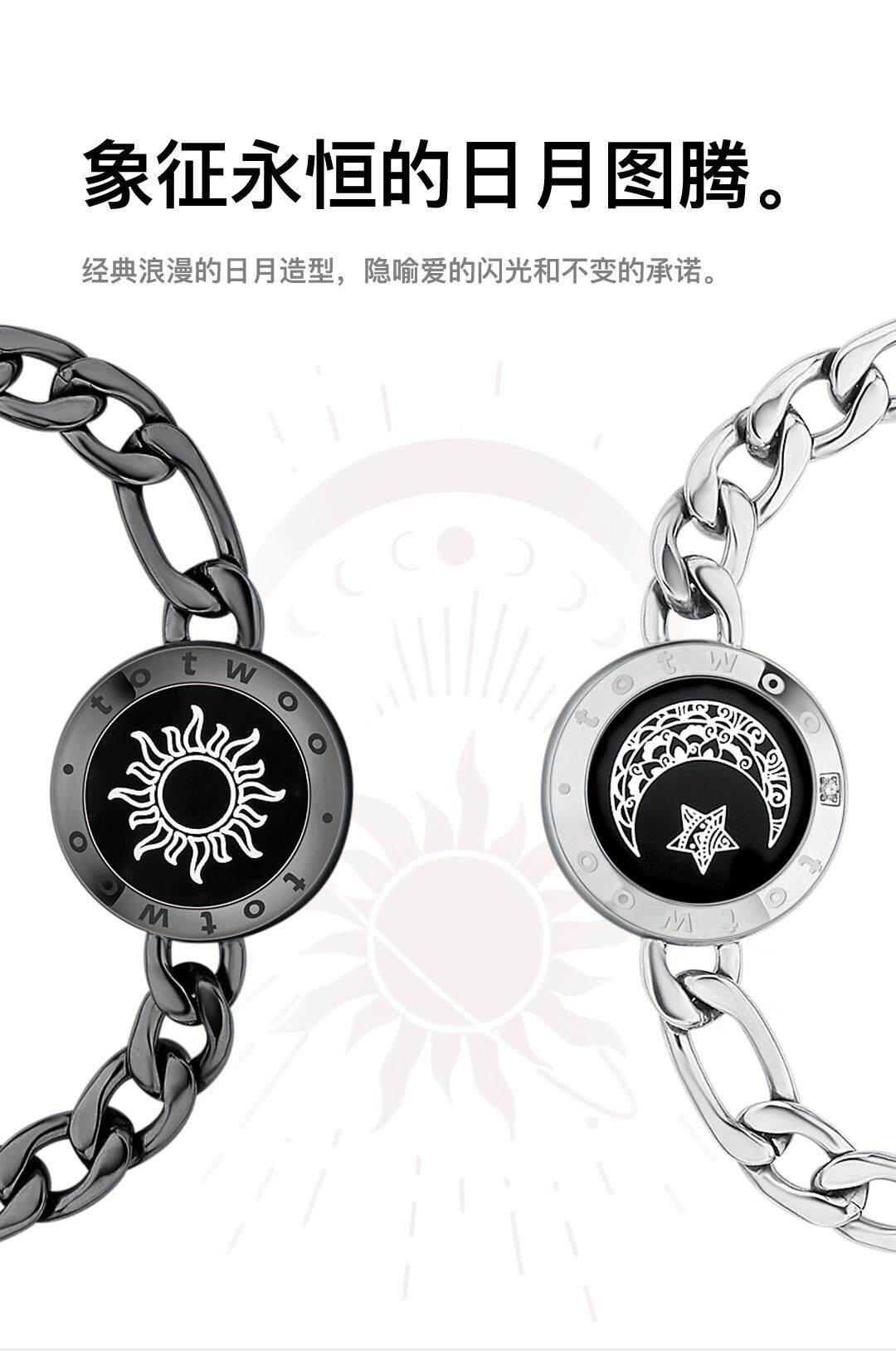Totwoo Couple Sensor Bracelet Titanium Steel Bracelet Sun and Moon Lover Couple Bracelet Lover Gift Token