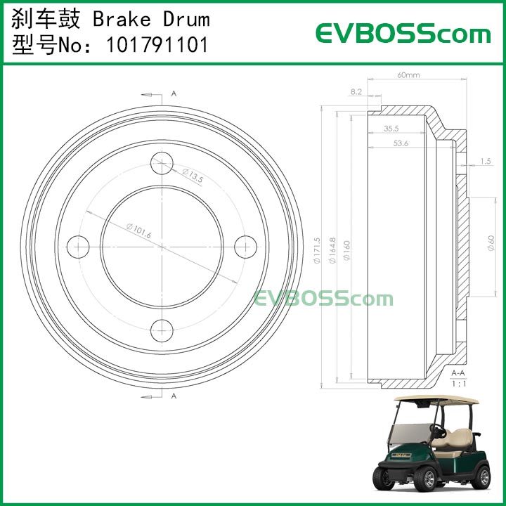 101791101 Brake Drum/160Clubcar Pioneer Brake Drum Golf Cart Accessories