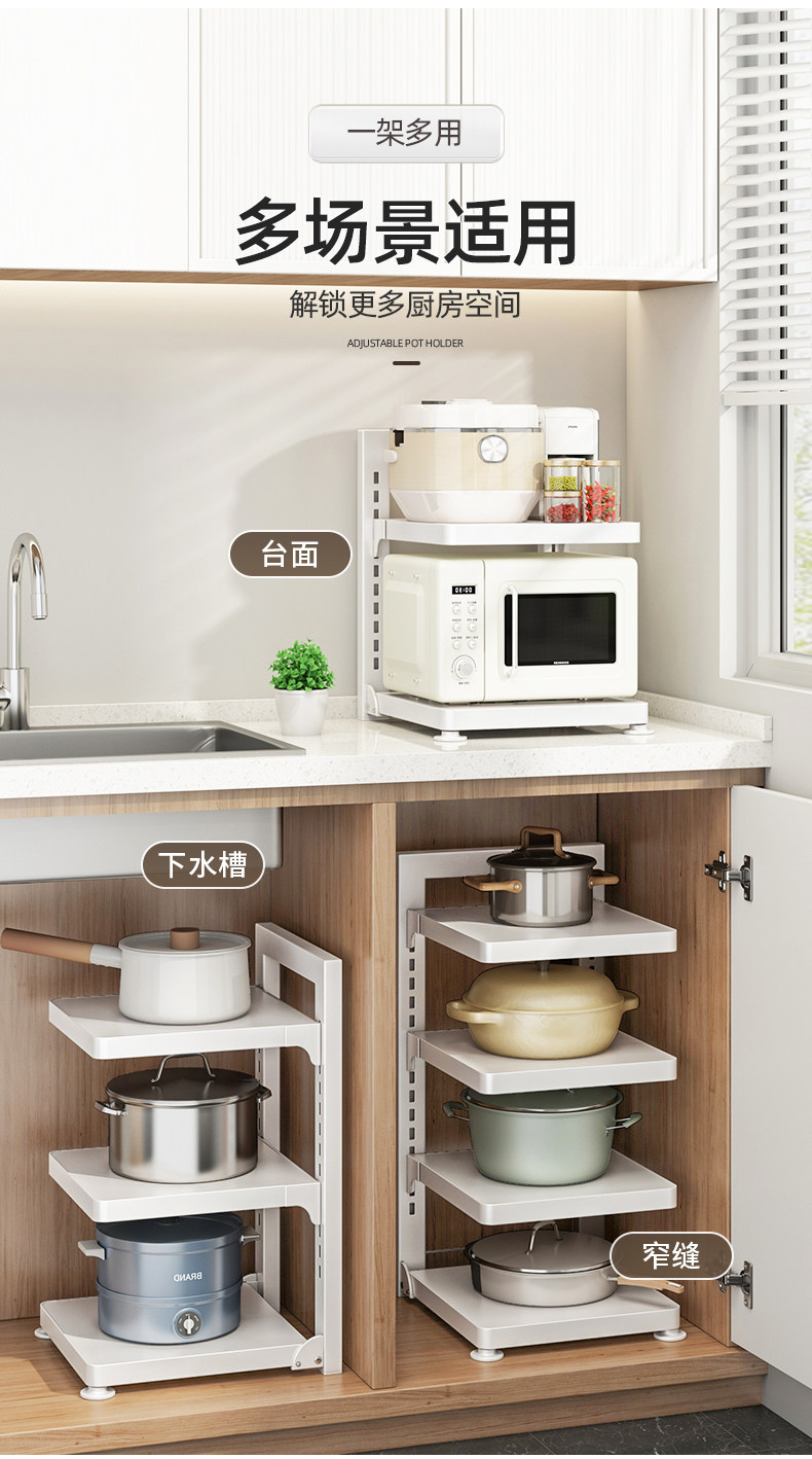 Kitchen Pot Storage Rack Multi-Layer Shelf Cabinet Organizer under Sink Countertop Floor-Standing Multifunctional Pot Rack