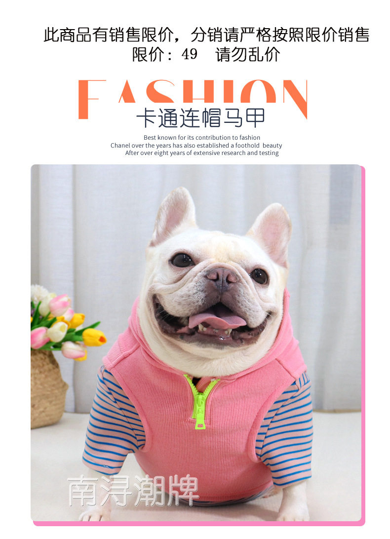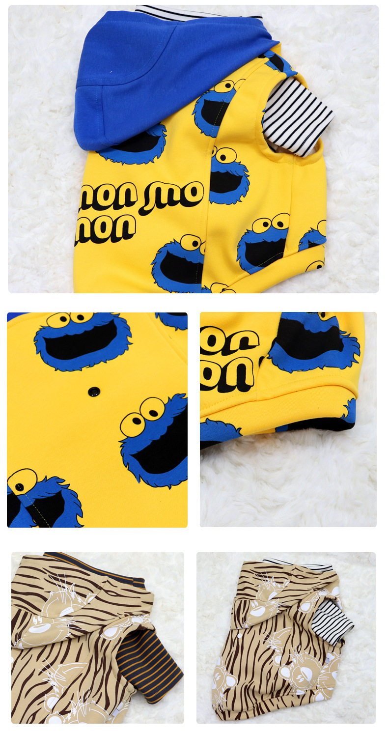 Dog Clothes for Autumn and Winter, Fleece-Lined and Thickened Vest, Hooded Sweatshirt for Fat Dogs, French Bulldogs, Pugs, Cotton Cartoon Vest