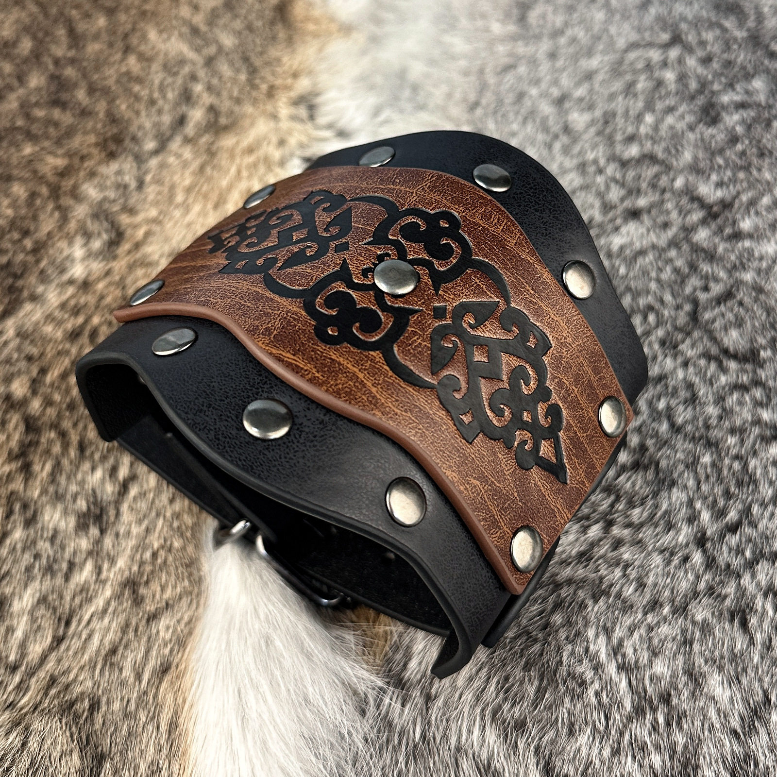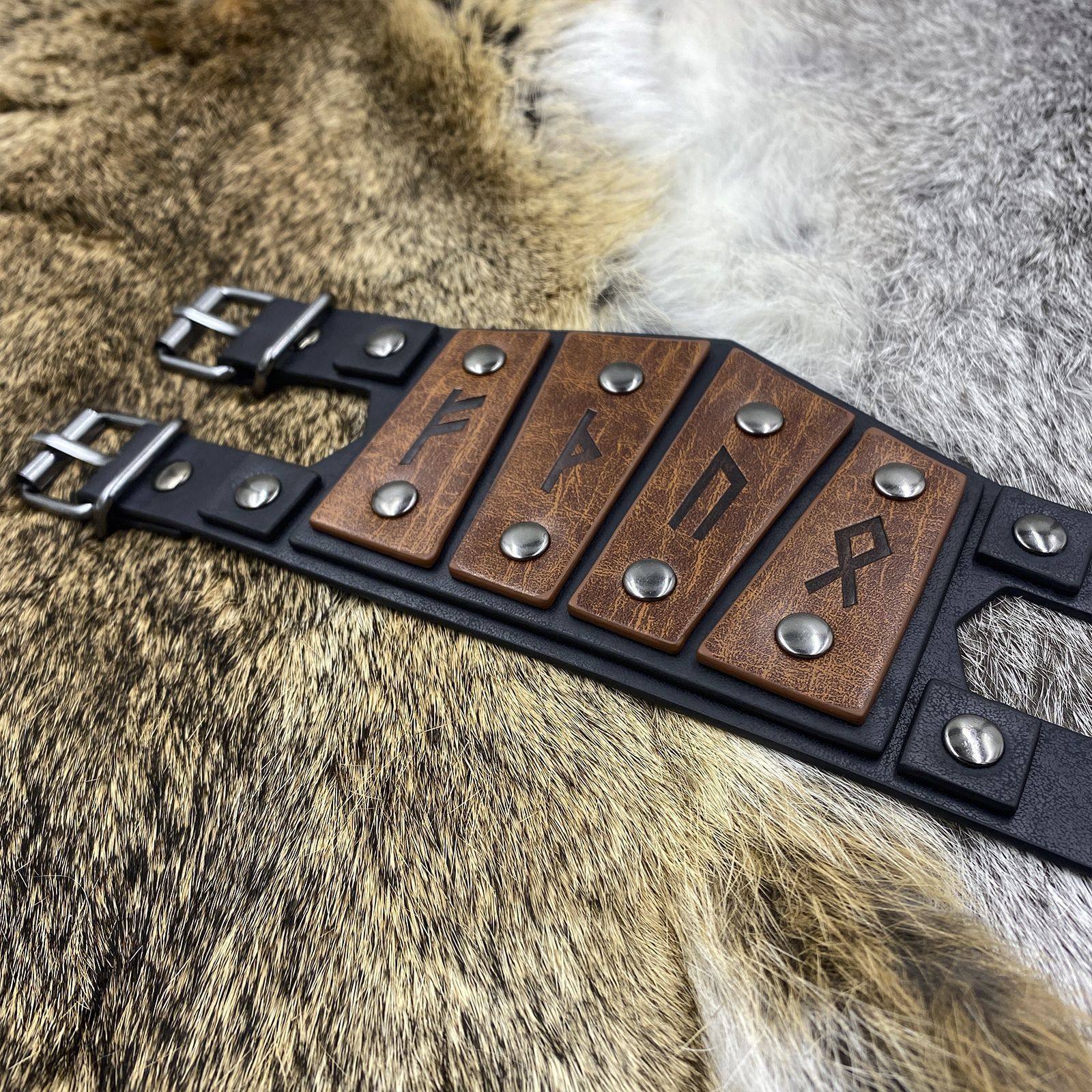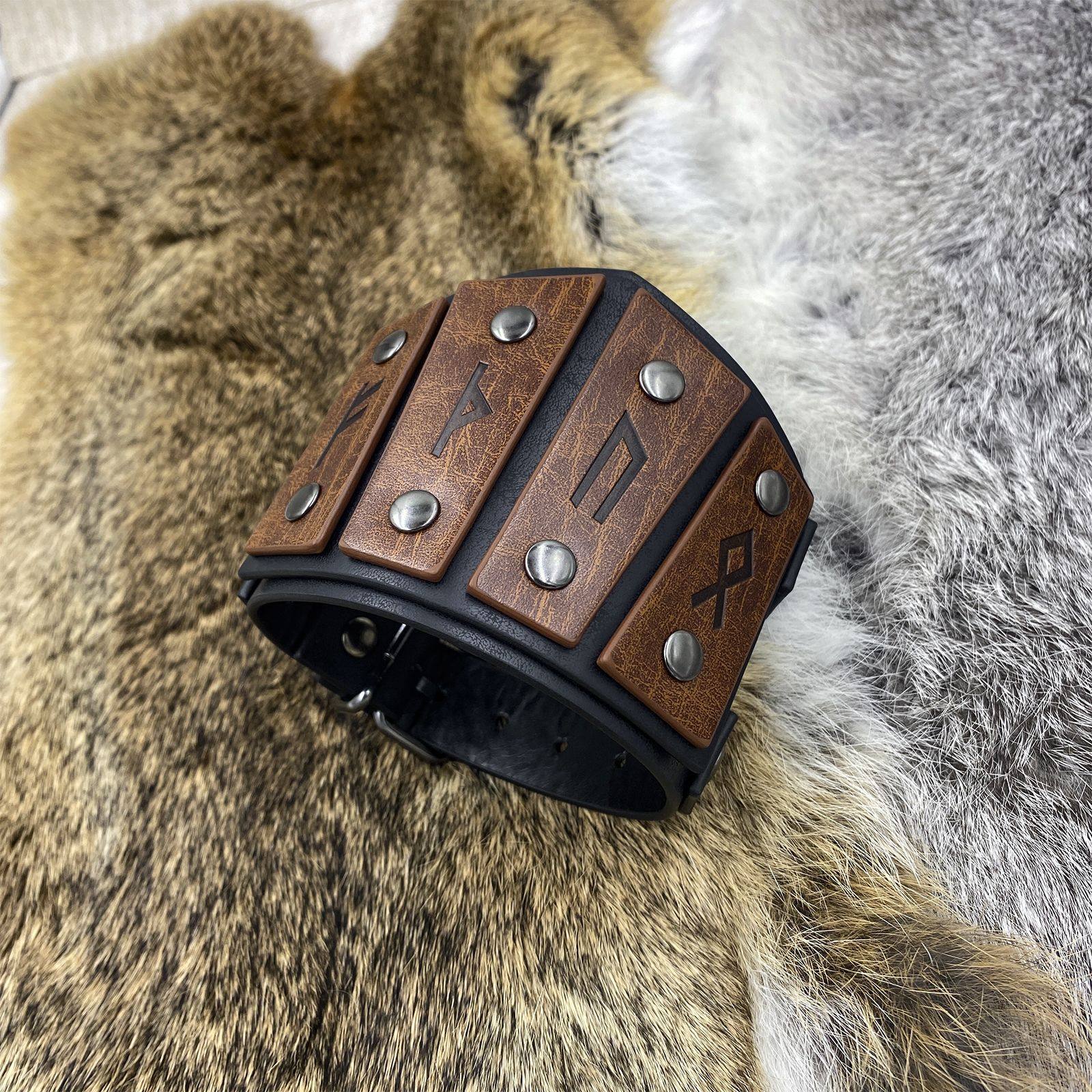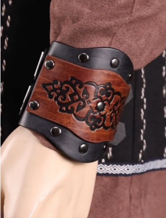 Medieval Short Wristband with Runes, Leather Bracelet, Sleeve Cover, Nordic Viking Style, Retro Cosplay Prop