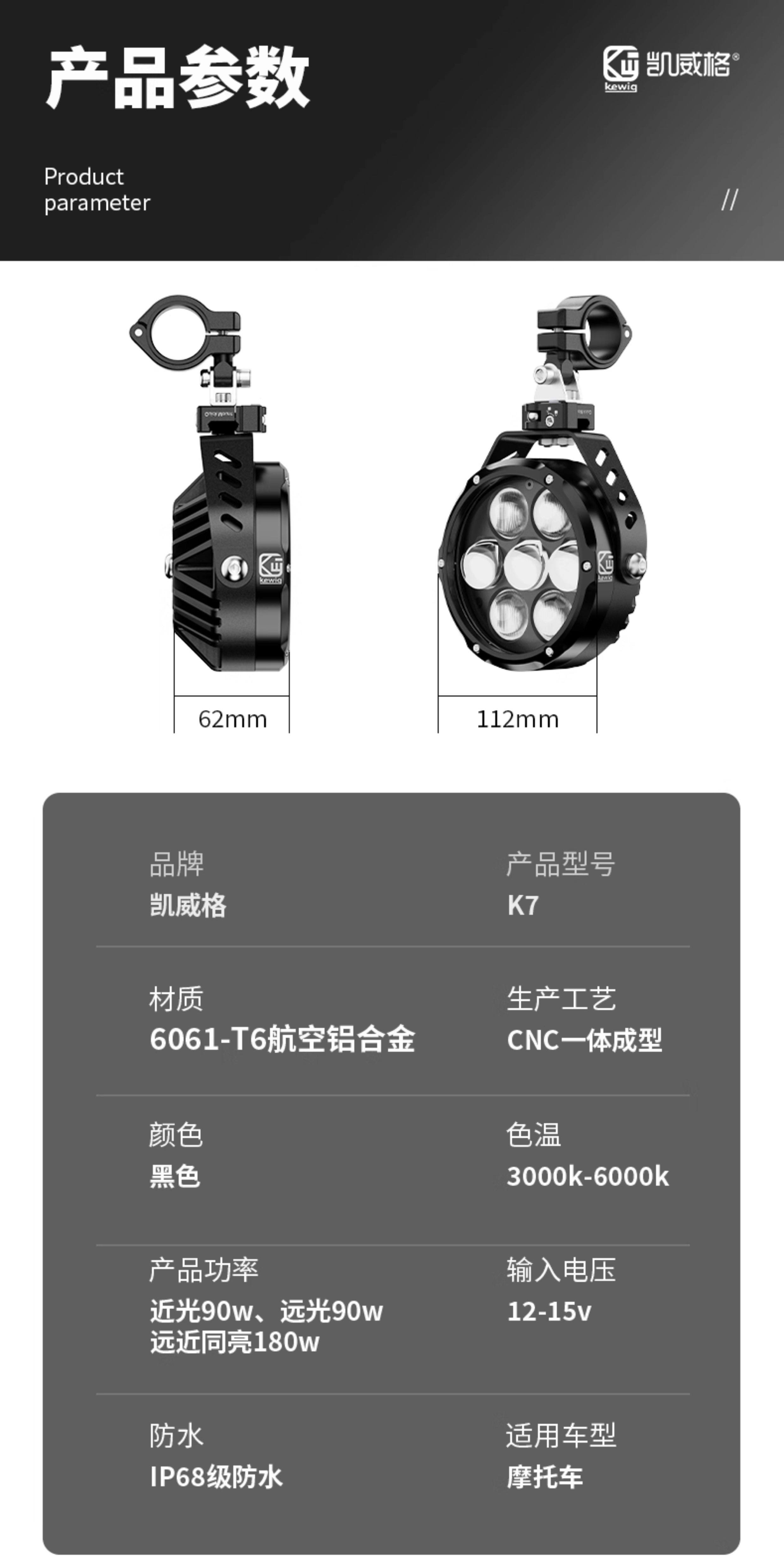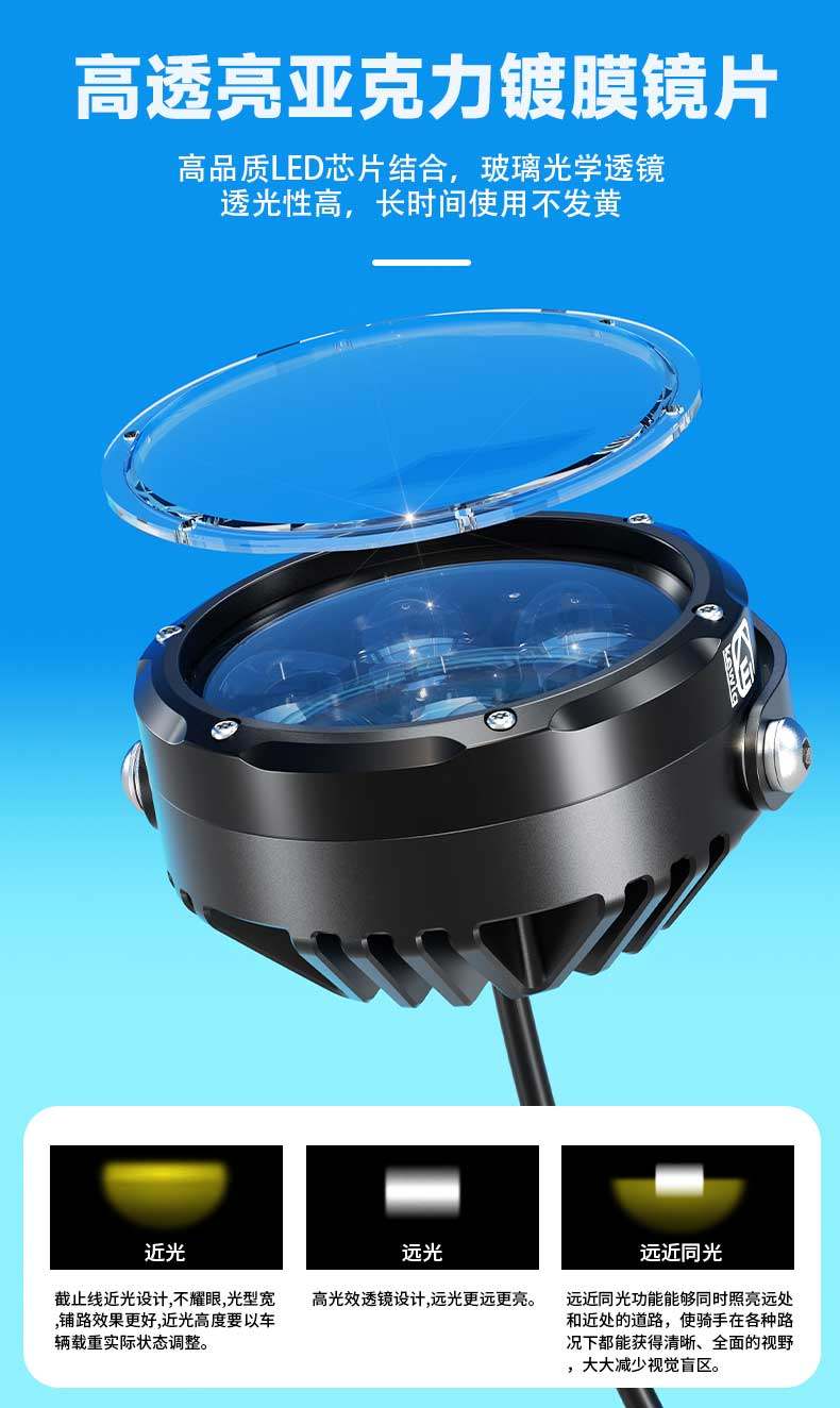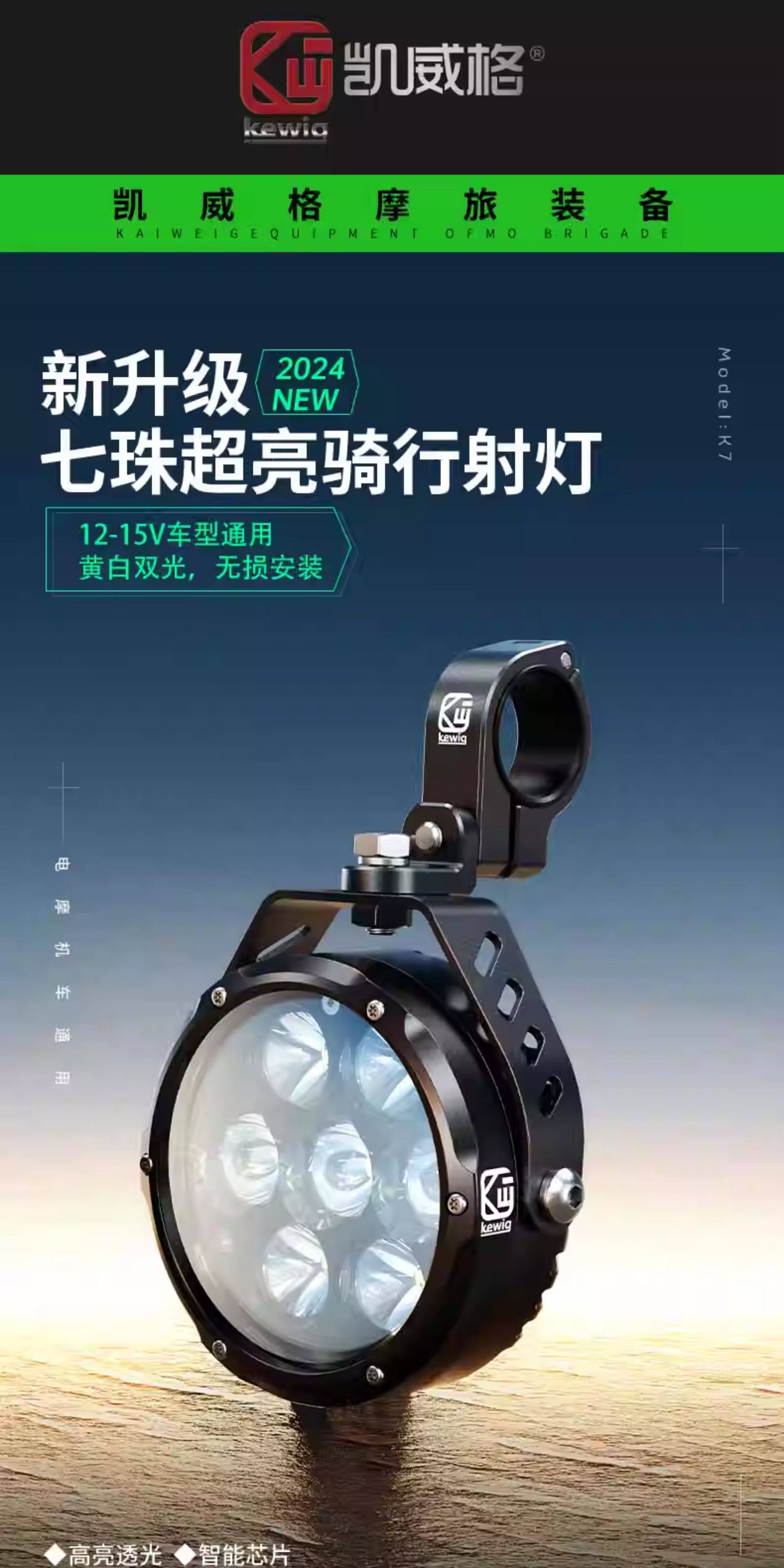 Kelvig K7 motorcycle spotlight quick disassembly high and low beam belt tangent burst flashing bright light LED seven beads high bright spotlight