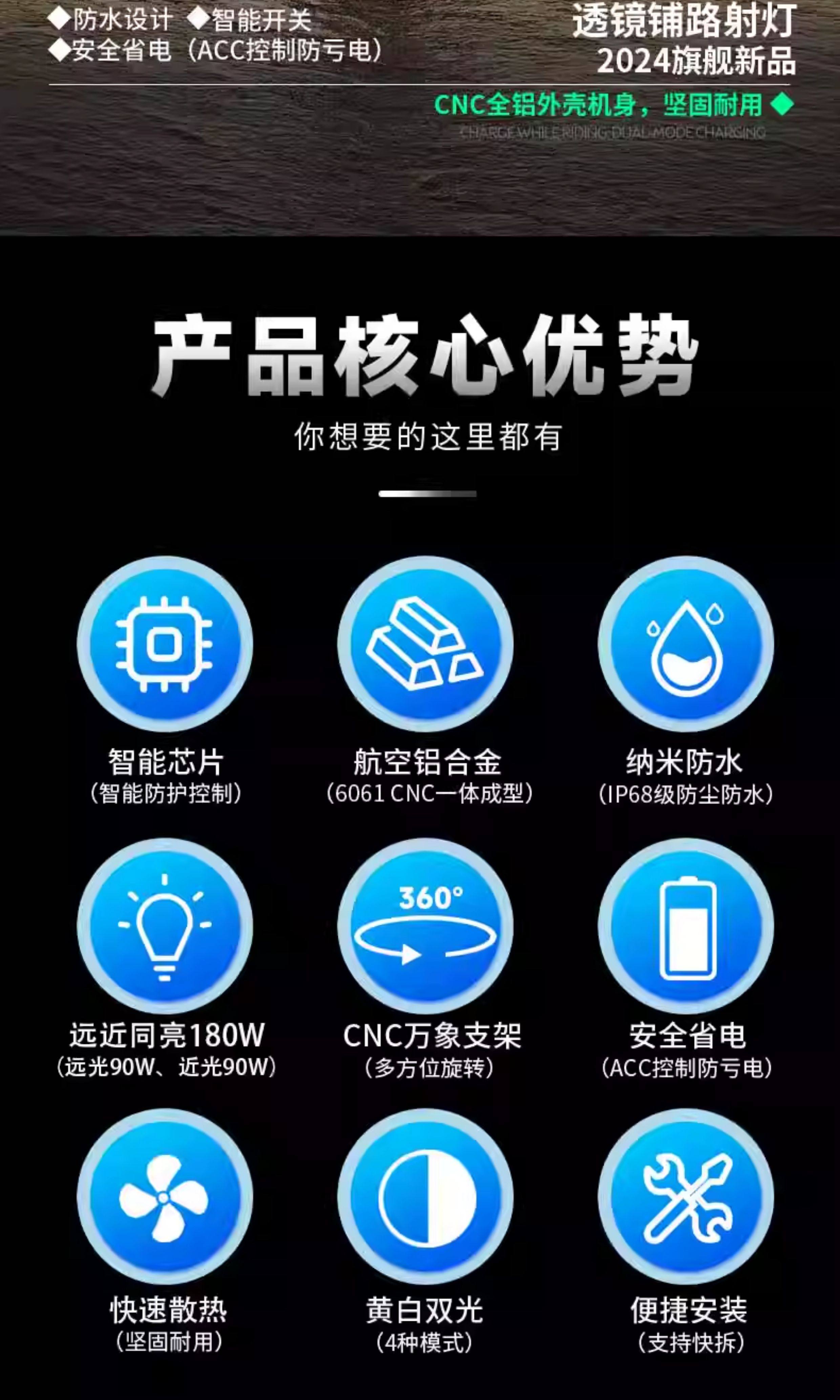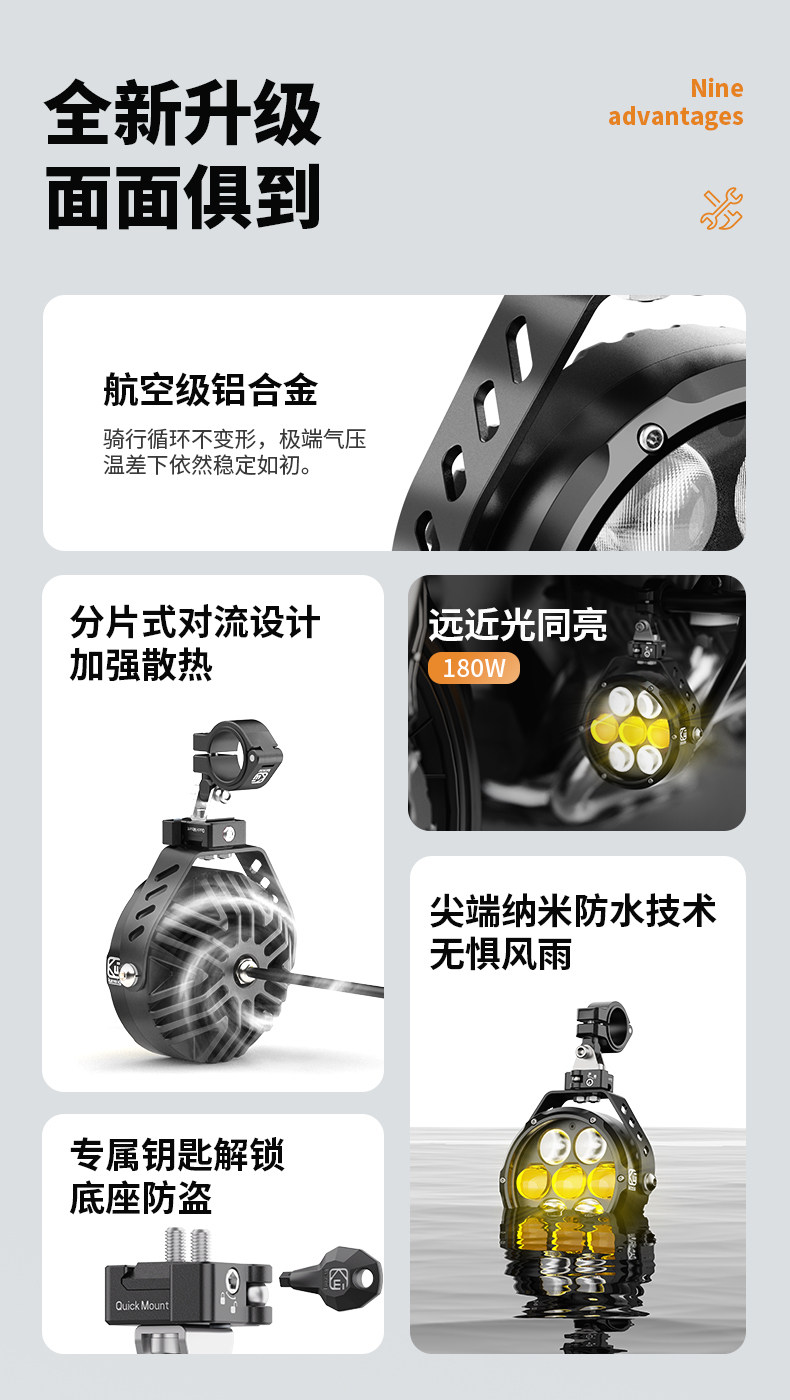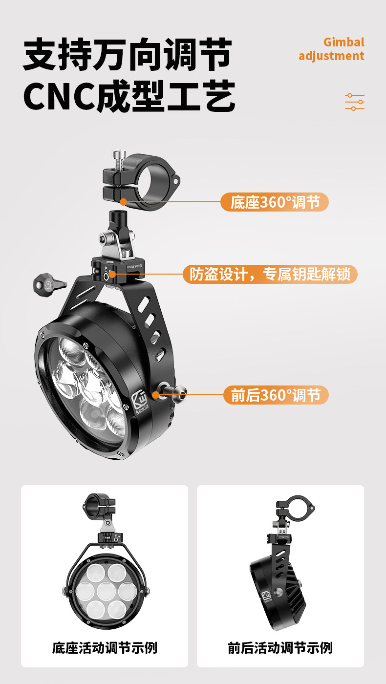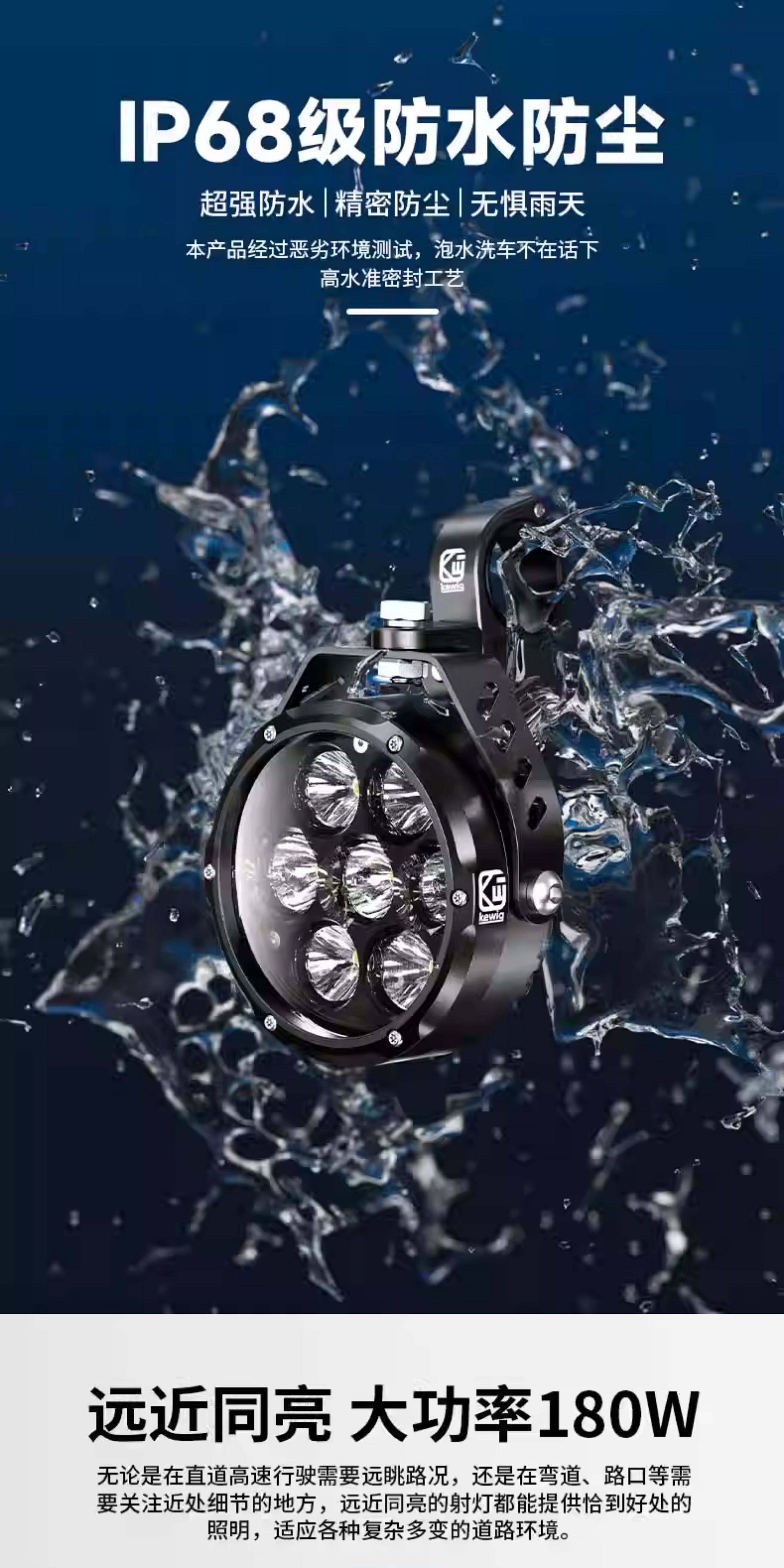 Kelvig K7 motorcycle spotlight quick disassembly high and low beam belt tangent burst flashing bright light LED seven beads high bright spotlight