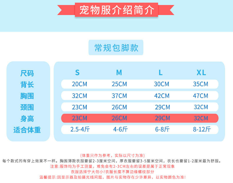 Size S Back Length 20cm,M Back Length 25cm,L Back Length 30cm,XL Back Length 35cm