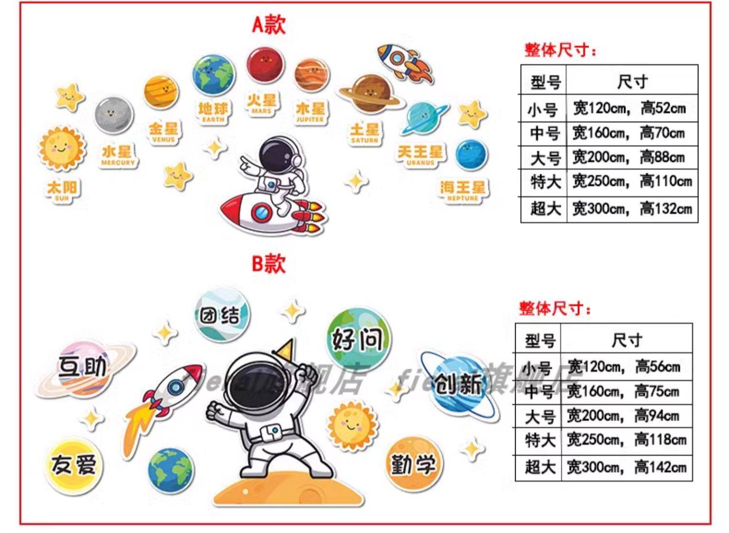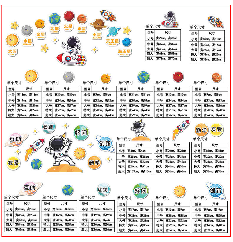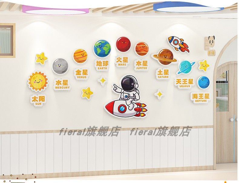 Kindergarten Environmental Creation Materials Theme Wall Stickers Finished Product Eight Planets Astronauts Corridor Hallway Cultural Wall Decoration