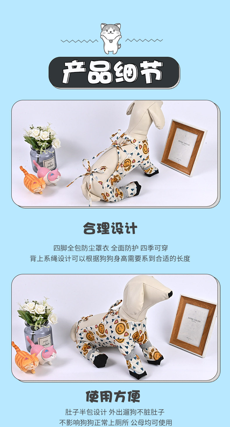 Dog Dust-Proof Leg Cover, Backless Coverall, Pet Full-Body Four-Legged Jumpsuit for Small and Medium-Sized Dogs, Teddy, Bichon, All-Season Clothing