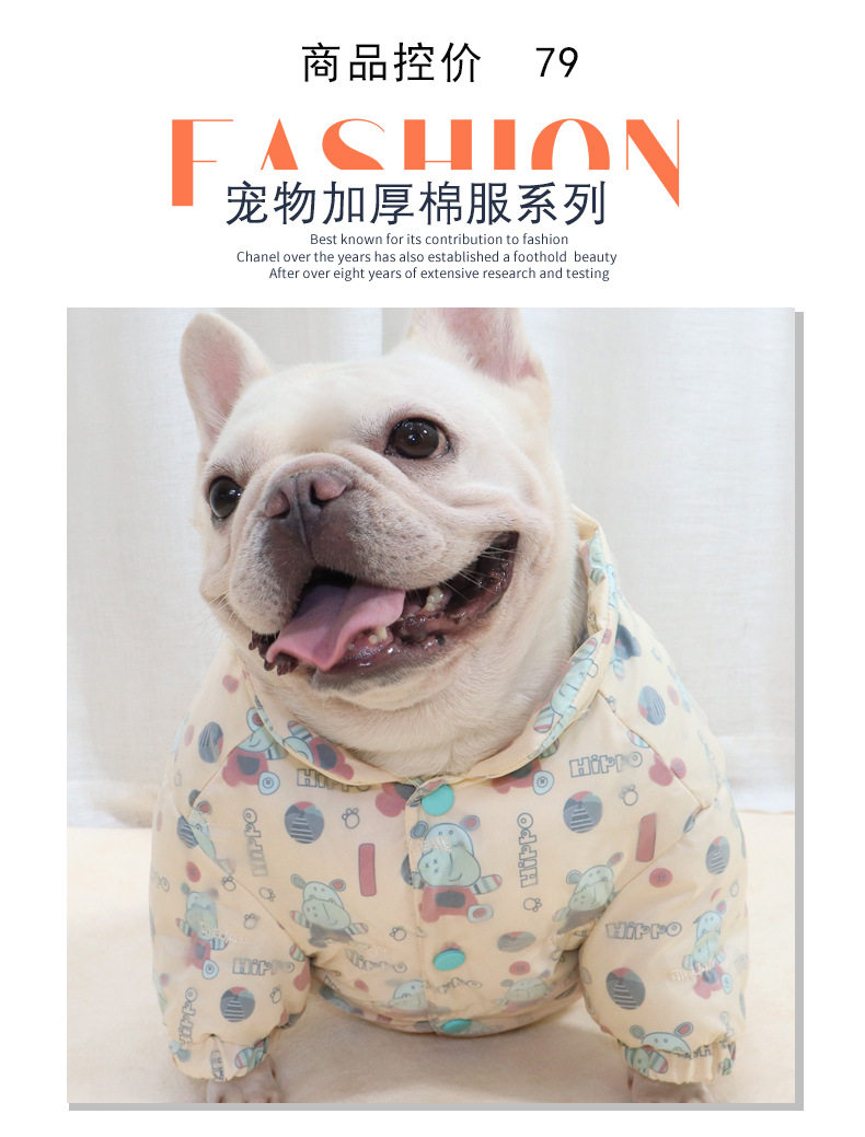 French Bulldog Clothes, Thick Winter Clothing, Padded Cotton Pug Dog Clothes, Bulldog Fat Dog Cotton Jacket, Cotton-Filled Winter Wear