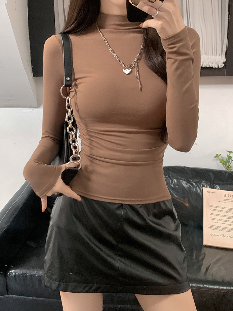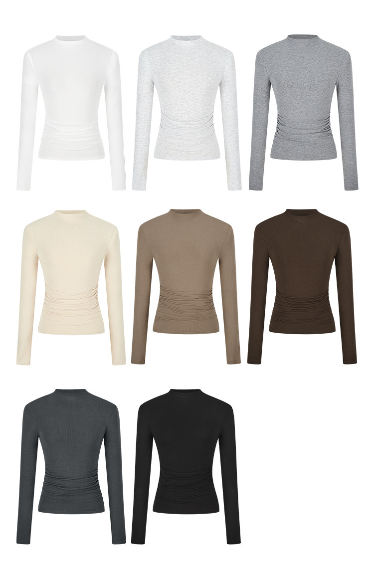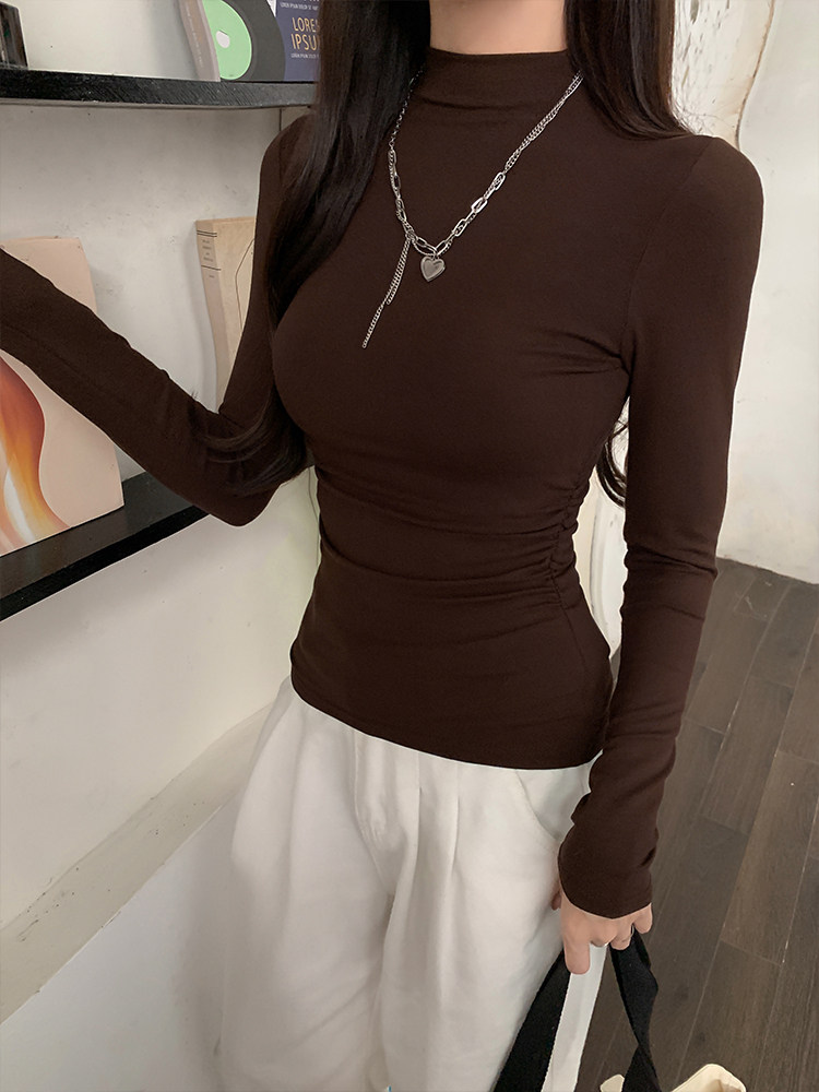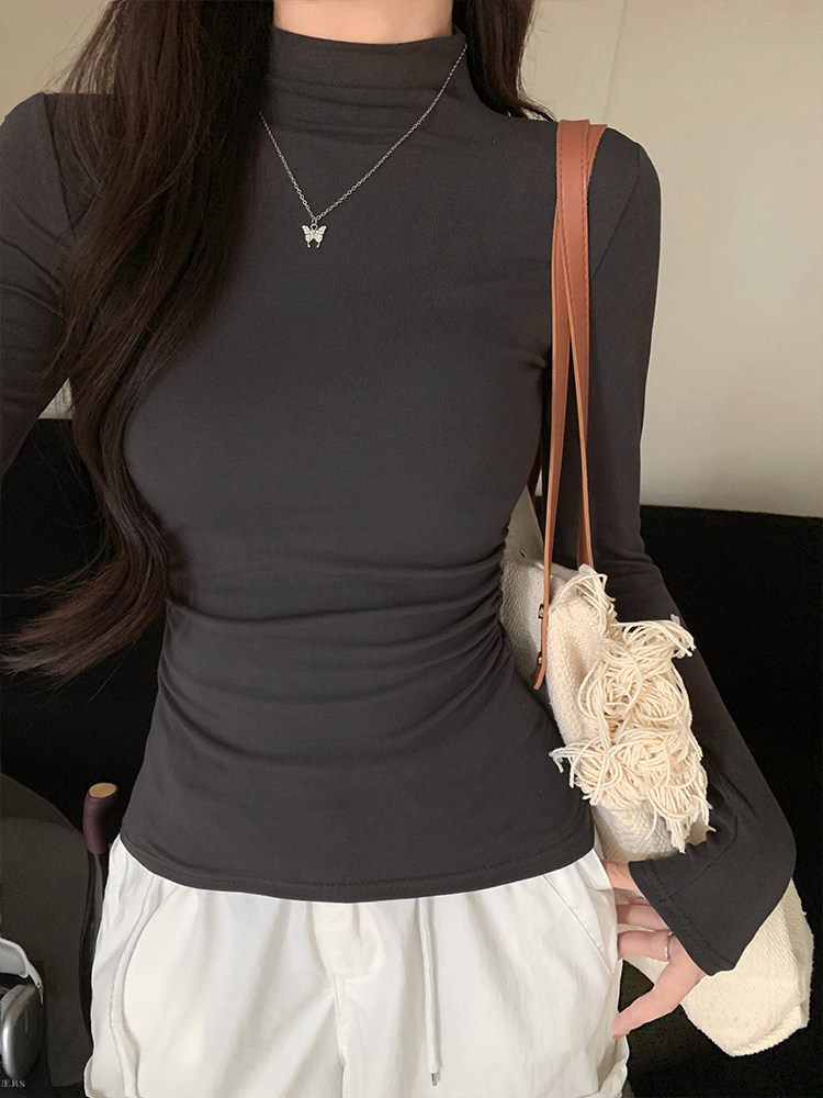 Half Turtleneck Base Shirt for Women, New Spring and Autumn Basic Style, Gray Small Stand Collar, Regular Shoulder, Long Sleeves, Inner Layer T-Shirt Top