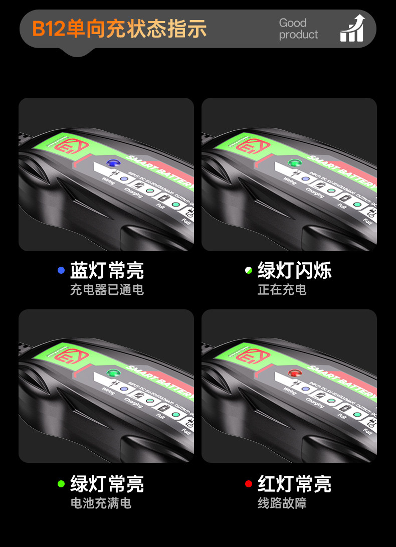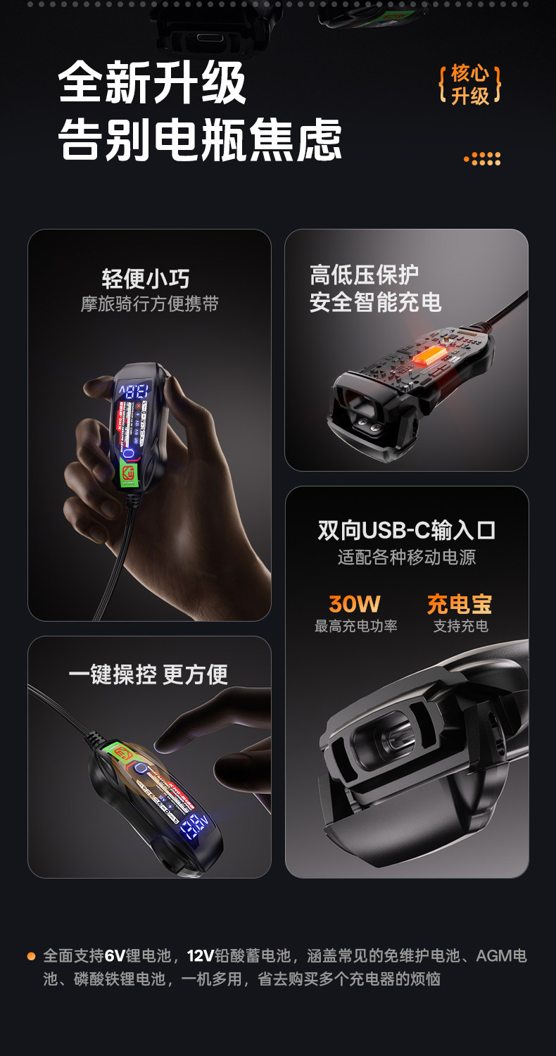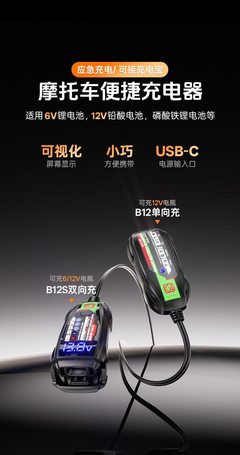 Sort by color B12 motorcycle battery charger + free PD fast charging cable,B12 motorcycle battery charger + free PD fast charging cable,B12S motorcycle two-way charger + free PD fast charging cable