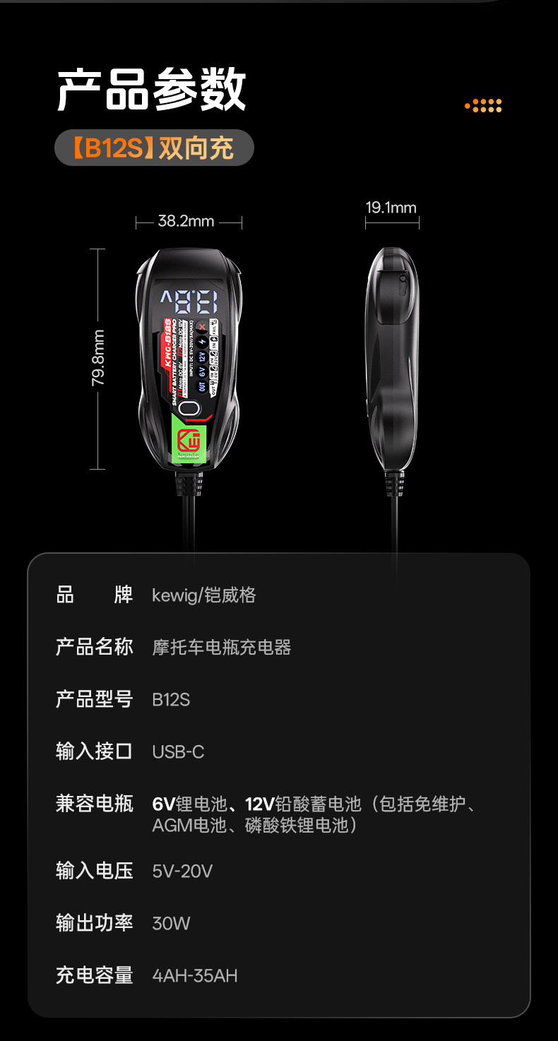 Kaiweige B12 motorcycle is equipped with a battery charger, modified charging port, super usb-c fast charging waterproof equipment