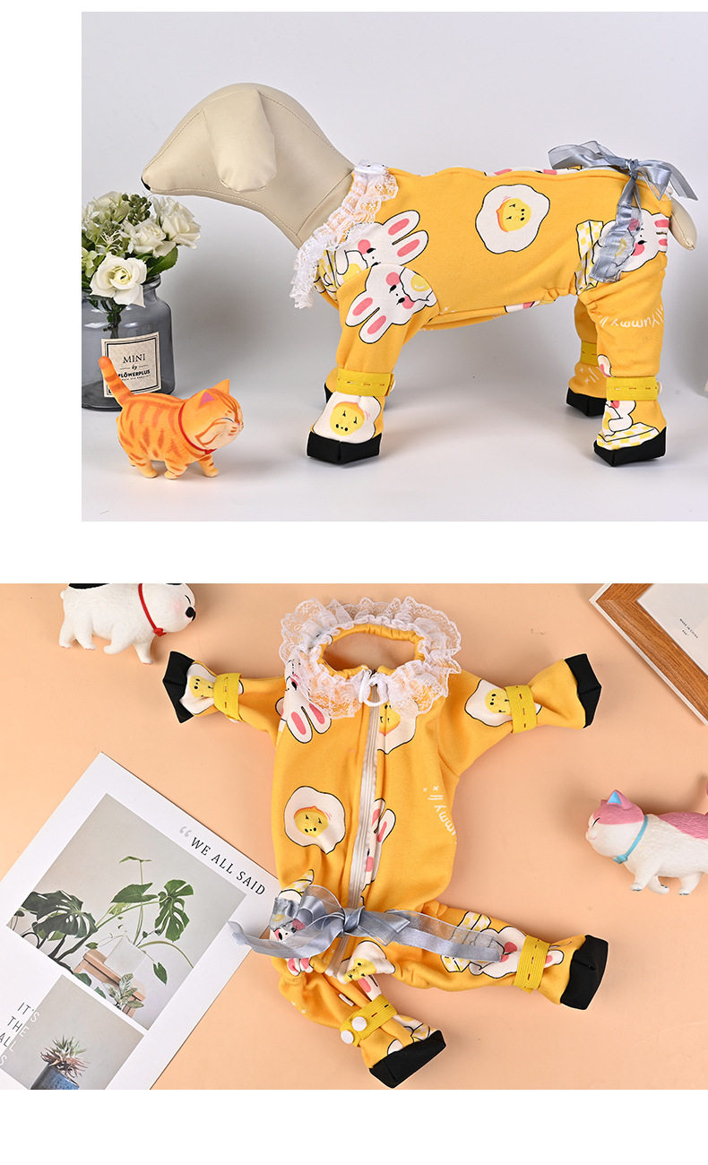 Spring, Autumn, and Winter Pet Cat and Dog Full-Body Four-Legged Jumpsuit for Teddy, Bichon, Small and Medium-Sized Dogs, Anti-Dirt Leg Protection, Suitable for Both Male and Female, with Leash Attachment Option