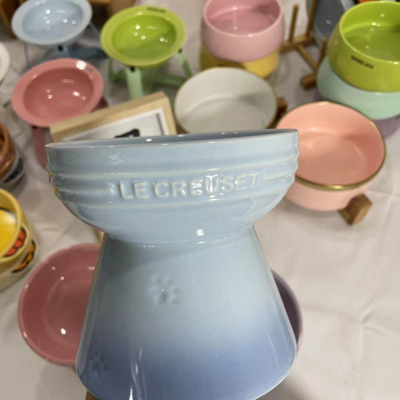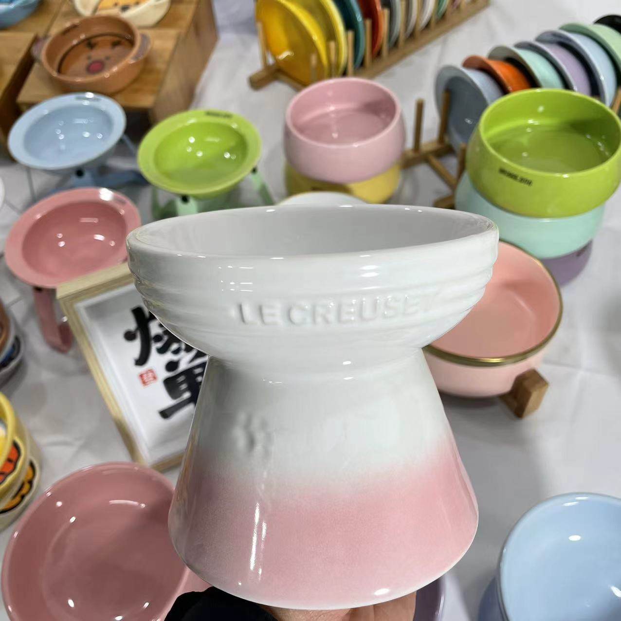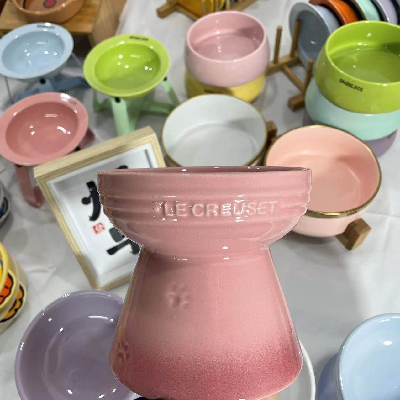 French Cool Color Ceramic Pet Bowl for Cats and Dogs, Slow-Eating and Drinking Bowl, Prevents Black Chin, Elevated Ceramic Pet Tableware