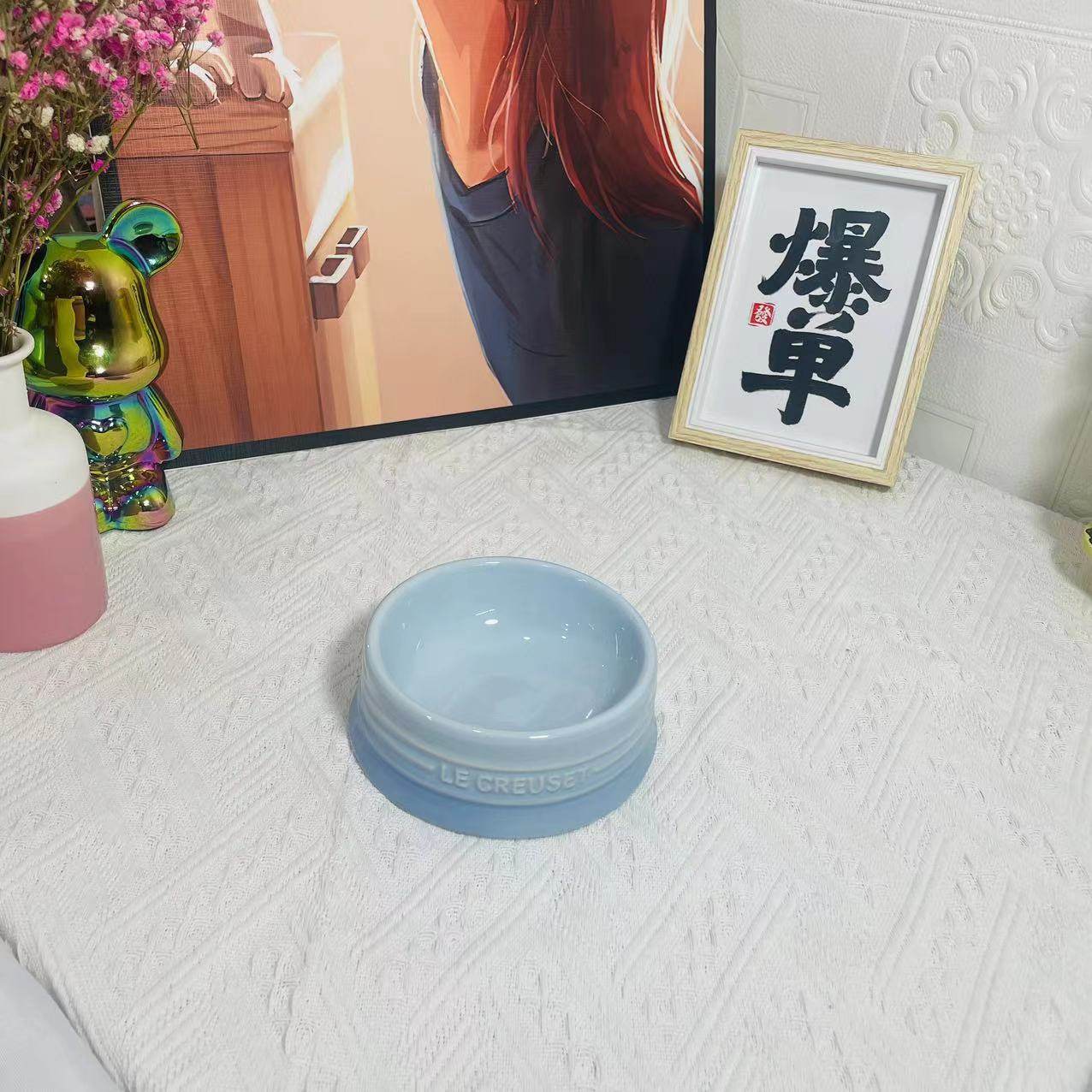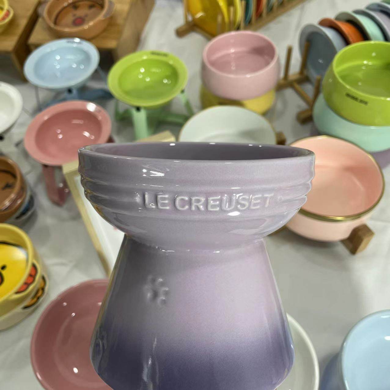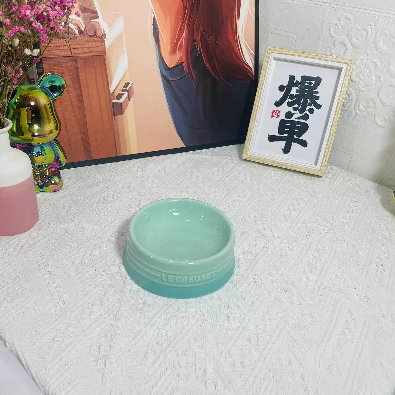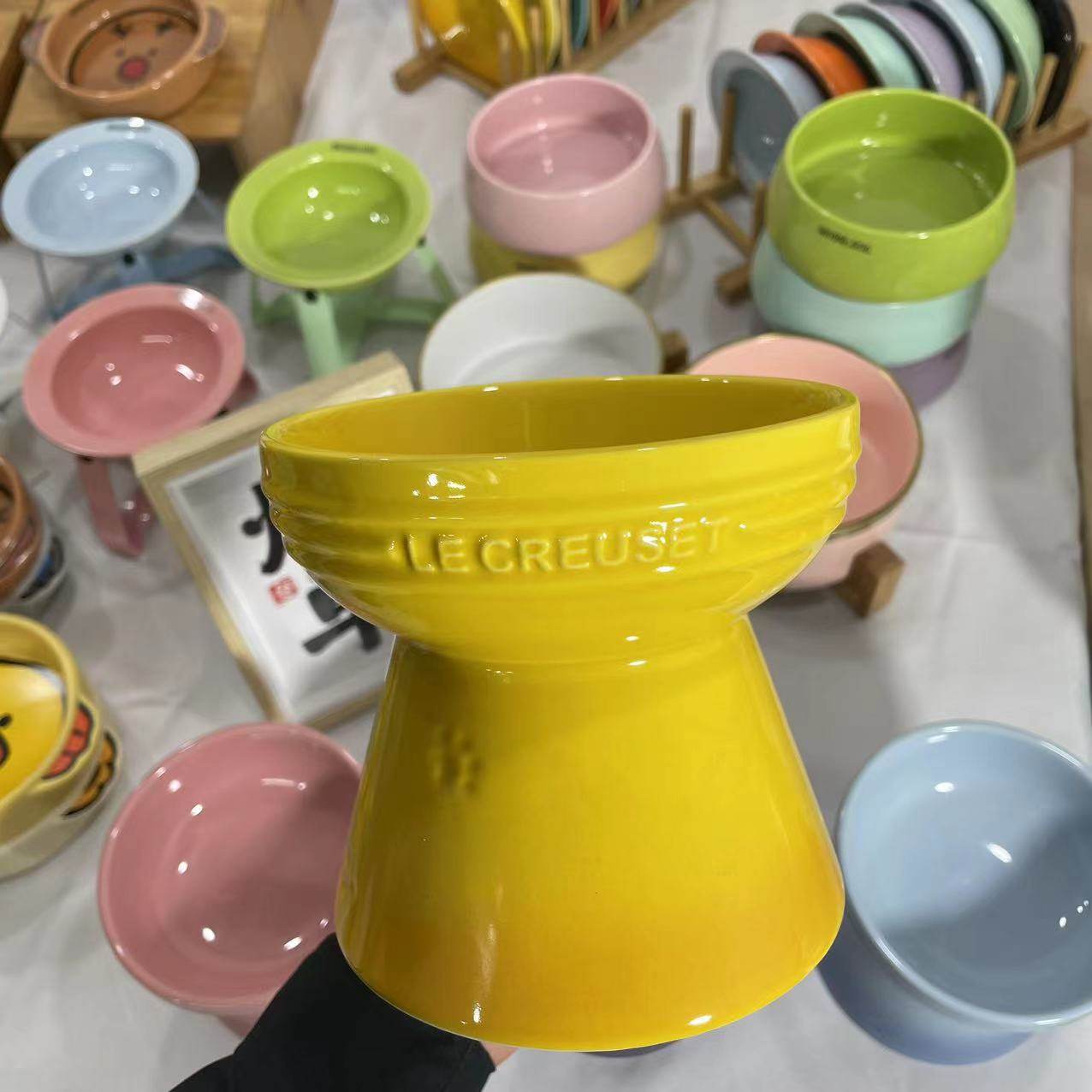 French Cool Color Ceramic Pet Bowl for Cats and Dogs, Slow-Eating and Drinking Bowl, Prevents Black Chin, Elevated Ceramic Pet Tableware