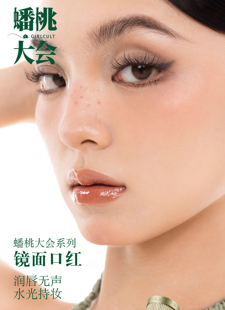 Girlcult Peach Mirror Lipstick Water Glossy Lip Glaze Long-Lasting Film-Forming Moisturizing Plumping Lipstick for Women Non-Stick Cup