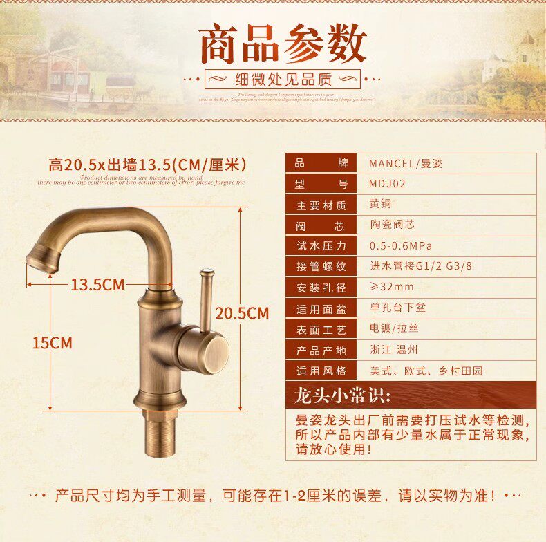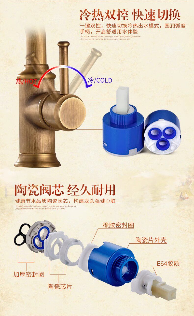Retro all-copper faucet bathroom washbasin basin washbasin hot and cold dual-use household extension
