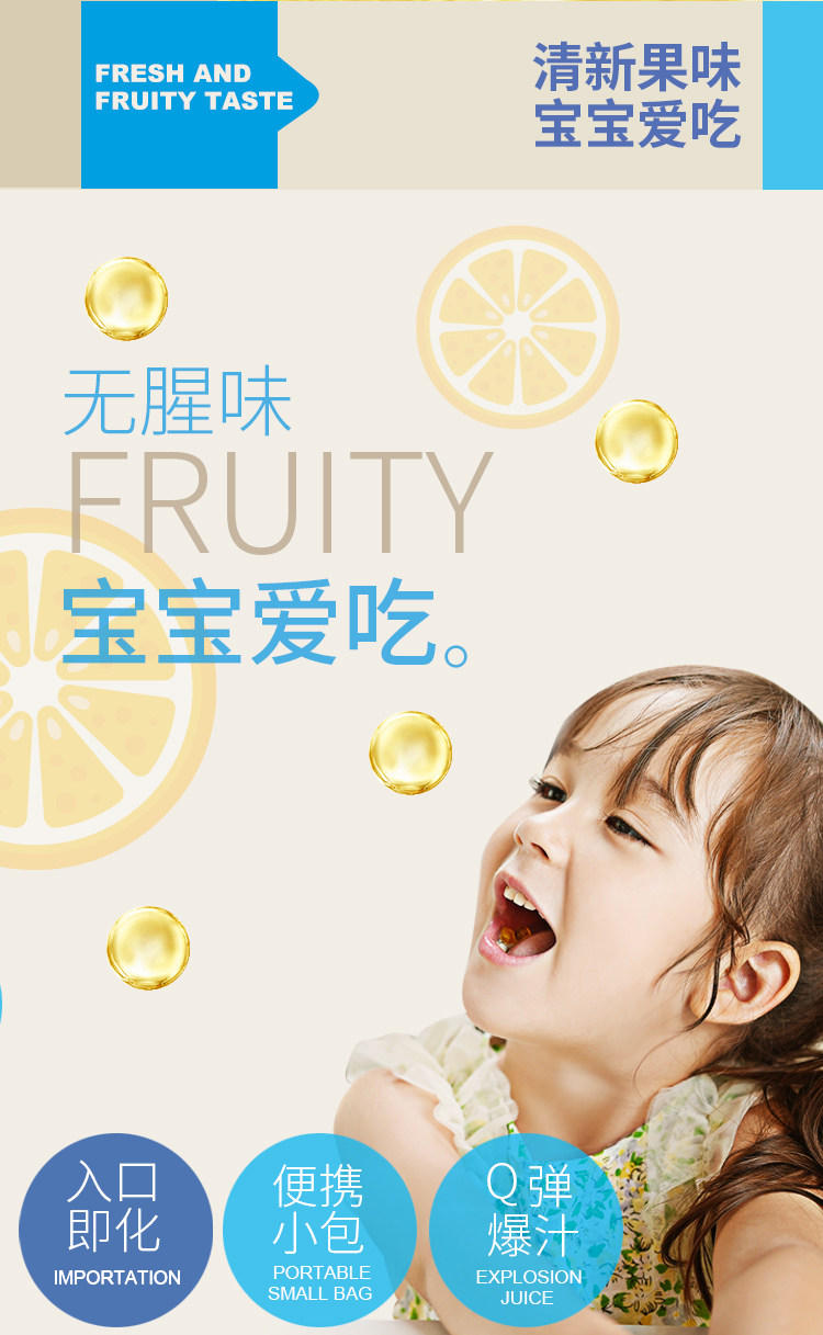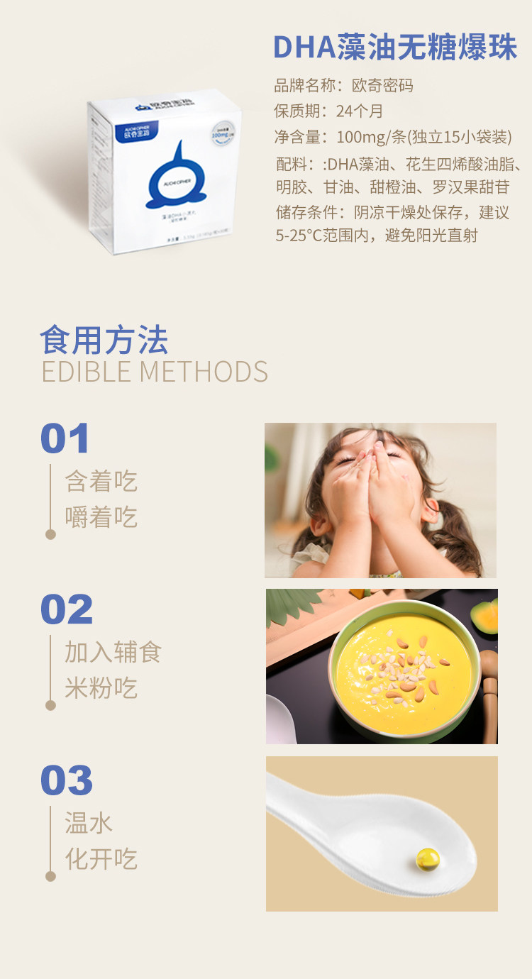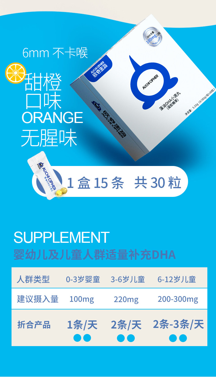 Ouqi Cipher Algae Oil DHA Dropping Pills Gel Candy 15 pieces/box Sweet Orange Flavor Infant and Child Nutritional Products