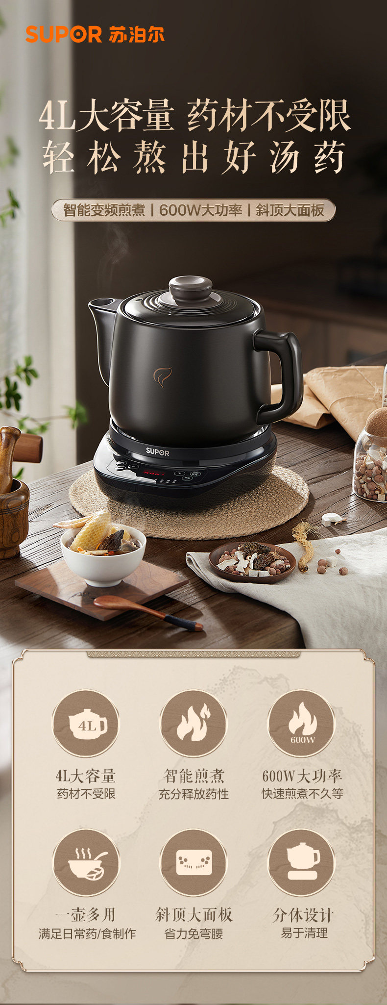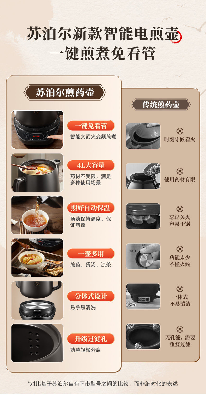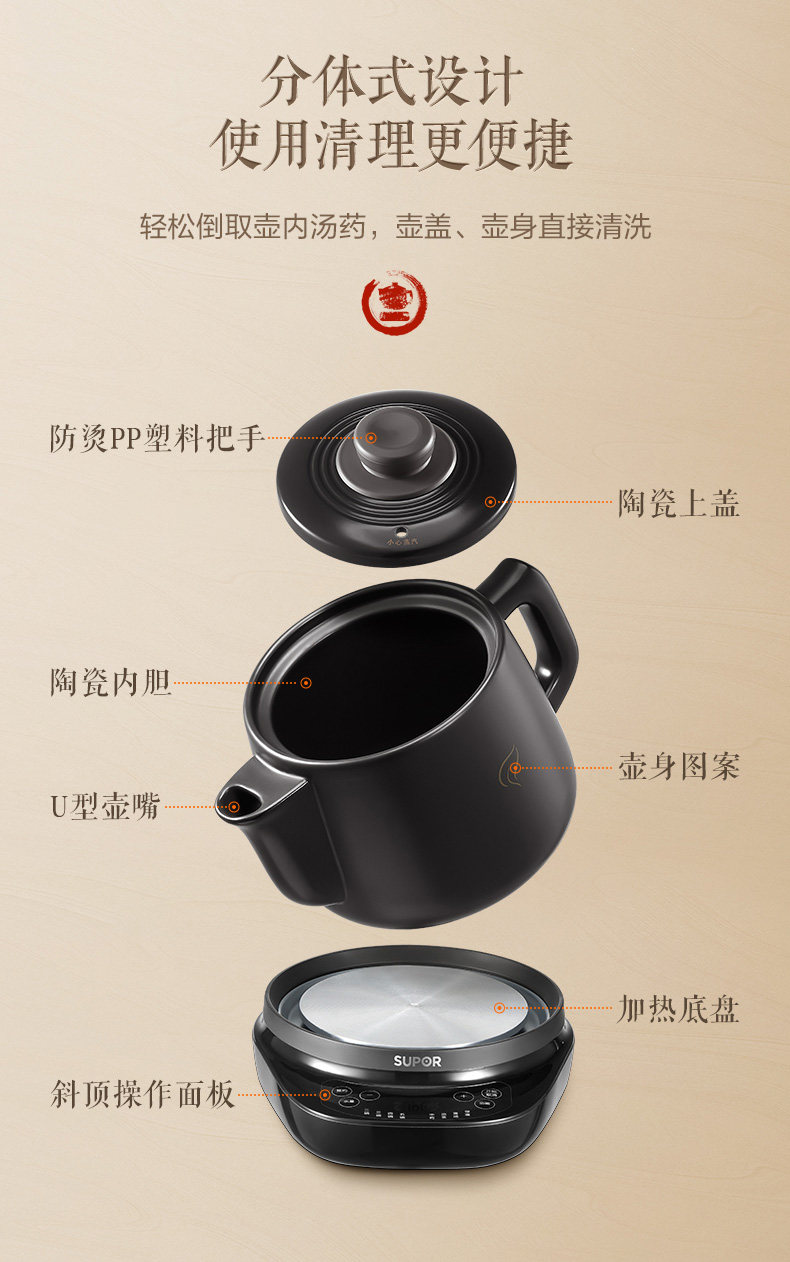Supor Electric Herbal Medicine Decocting Pot, Fully Automatic Medicine Boiling Health Pot, Traditional Chinese Medicine Cooking Pot, Household Medicine Pot