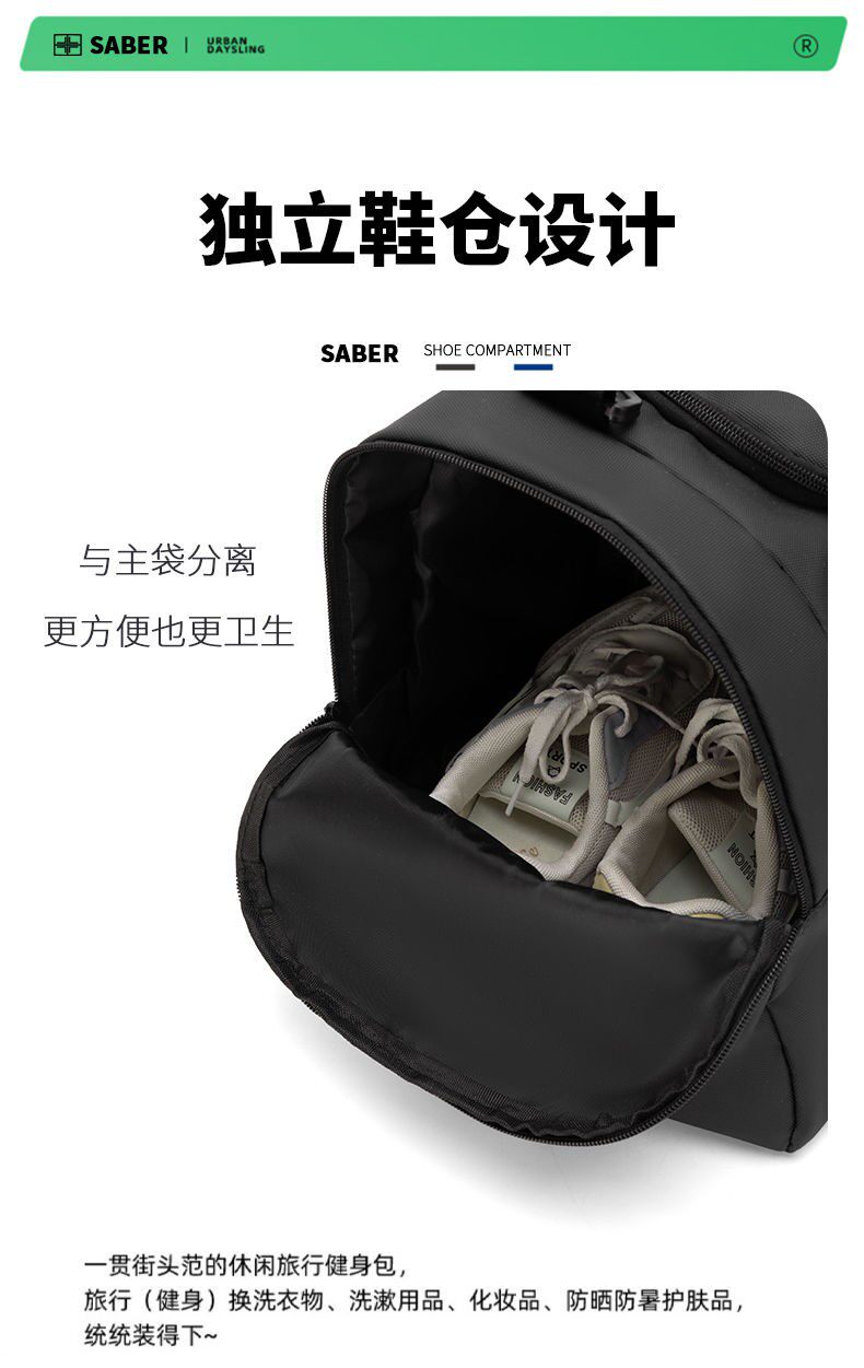 Large-capacity travel bag, shoulder cross-body fitness bag, long and short-distance business trip travel bag, dry and wet separation
