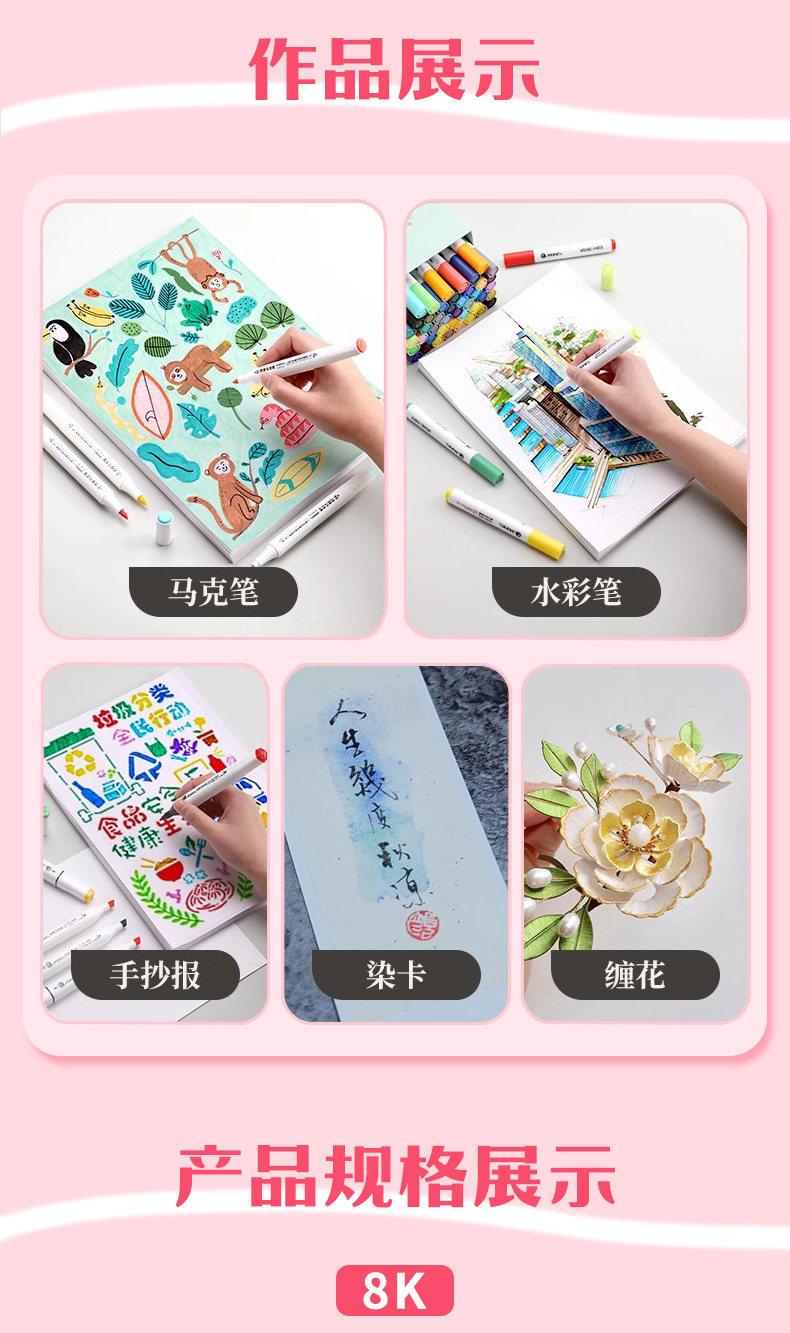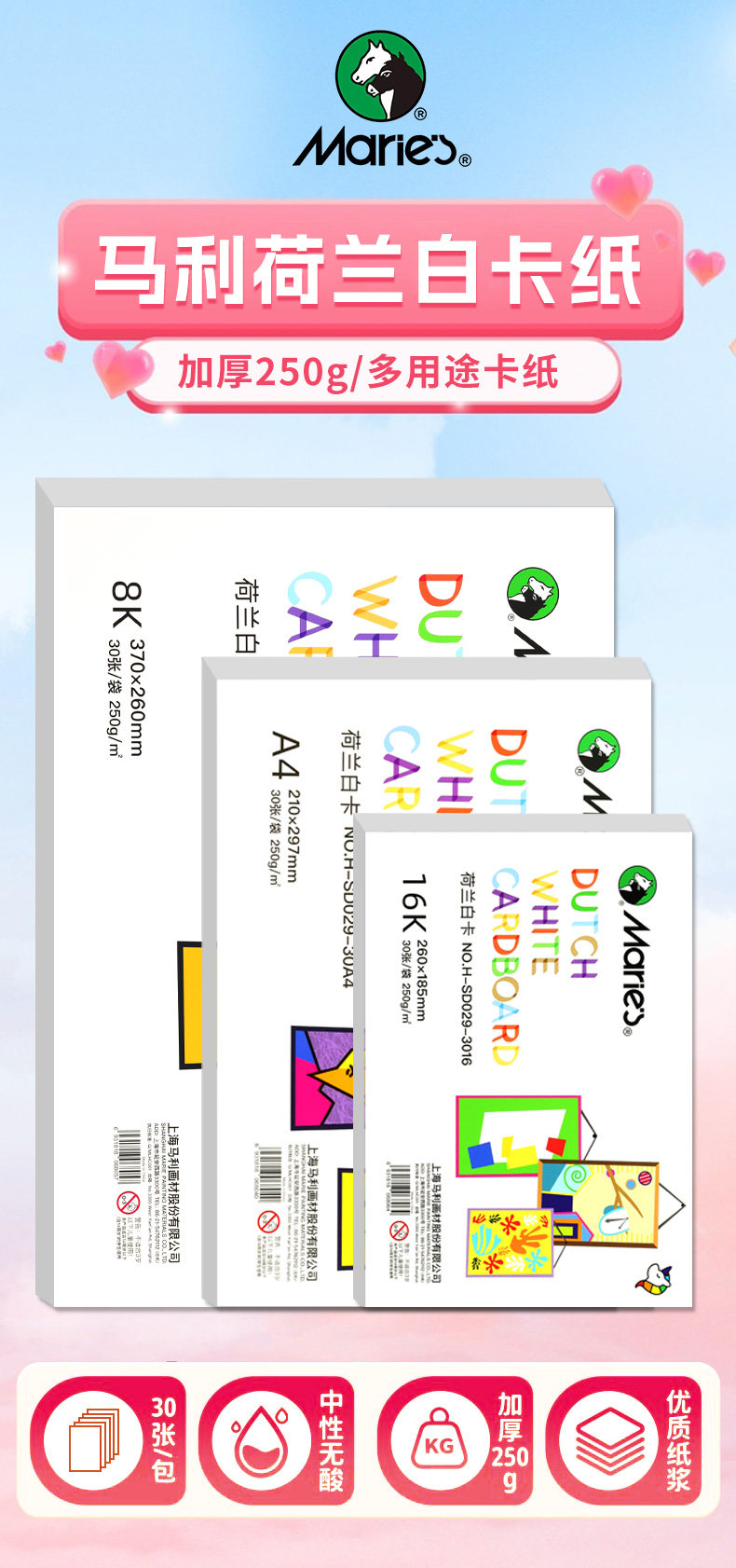 Marley Brand Dutch White Cardboard A48K16K Art Special Hard Cardboard 8 Open White Thickeneded Kidsren's Student Marker Pen Painting Book Handwritten Newspaper DIY Origami Card Printing Handmade Paper