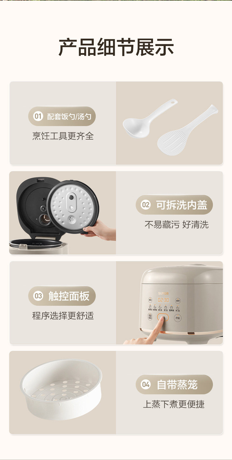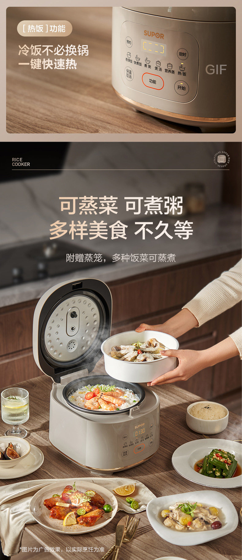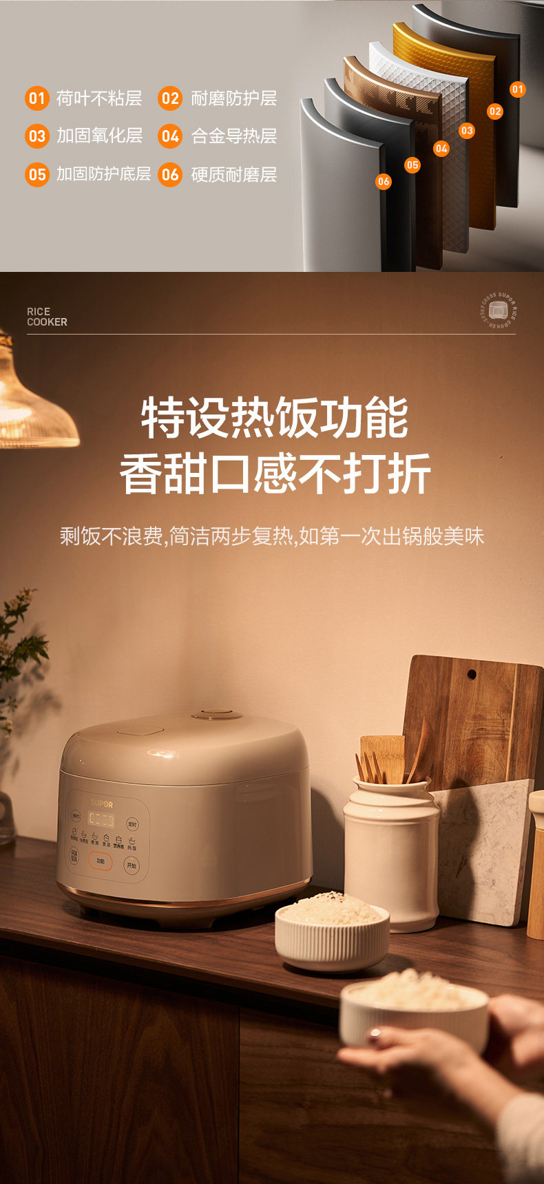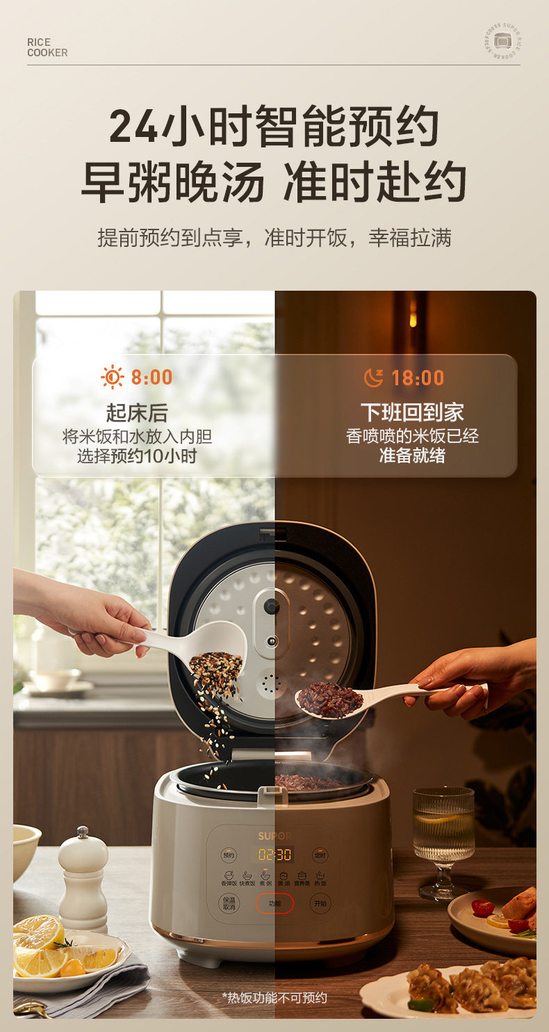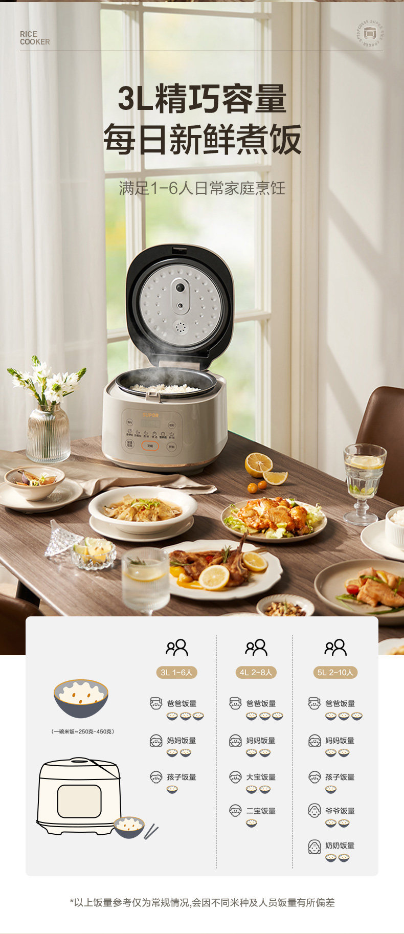Supor Electric Rice Cooker for Home Use, Small 3L Smart Mini Rice Cooker for 3-4 People, Multifunctional, Genuine Product from Flagship Store