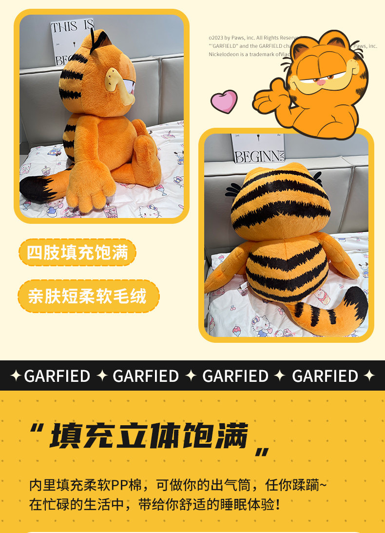 Vockoo Garfield Cat Plush Doll Official Cute Cat Plush Toy Girl Sleeping Pillow Gift