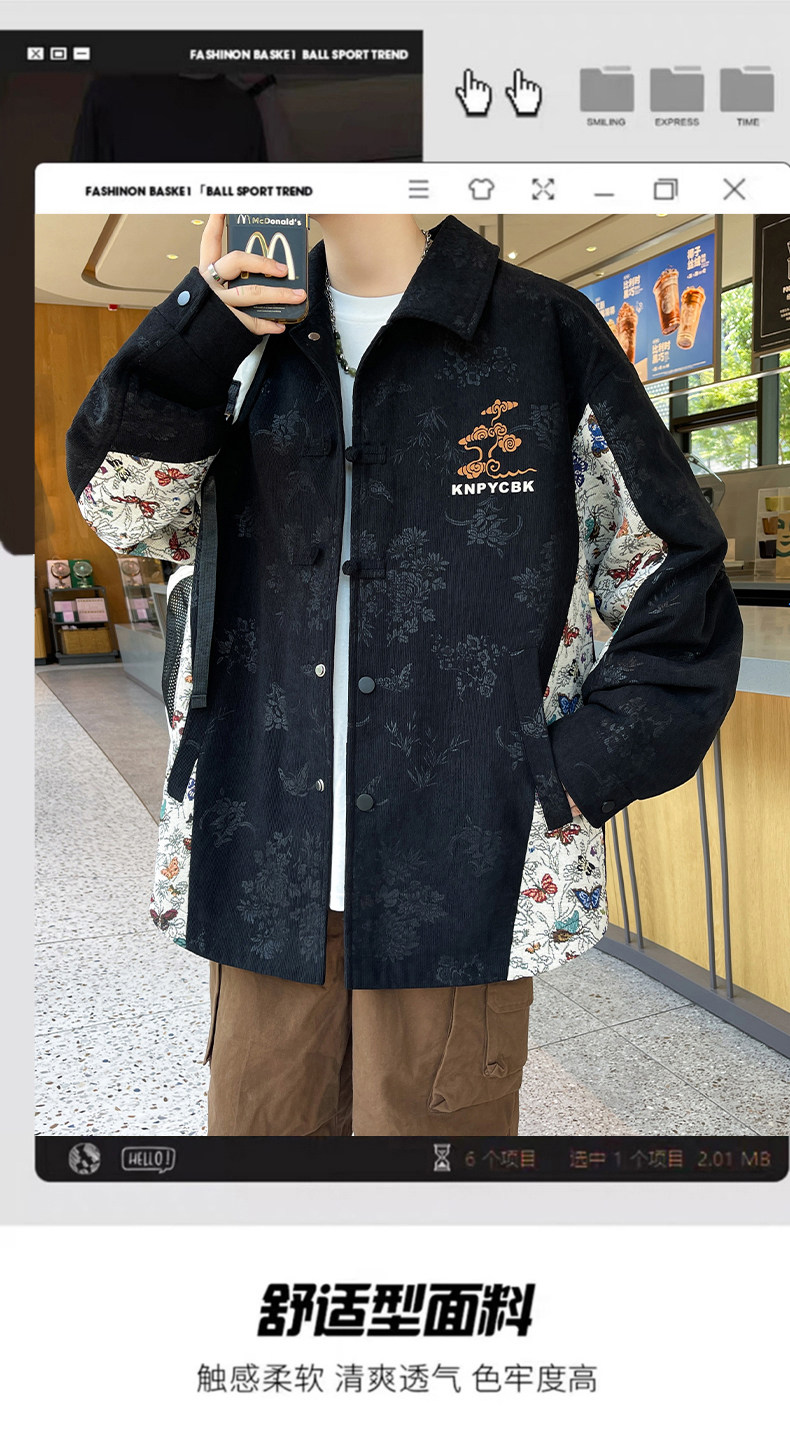 Ethnic style lapel jacket for men spring and autumn 2025 new trendy brand high-end shirt men's autumn handsome jacket