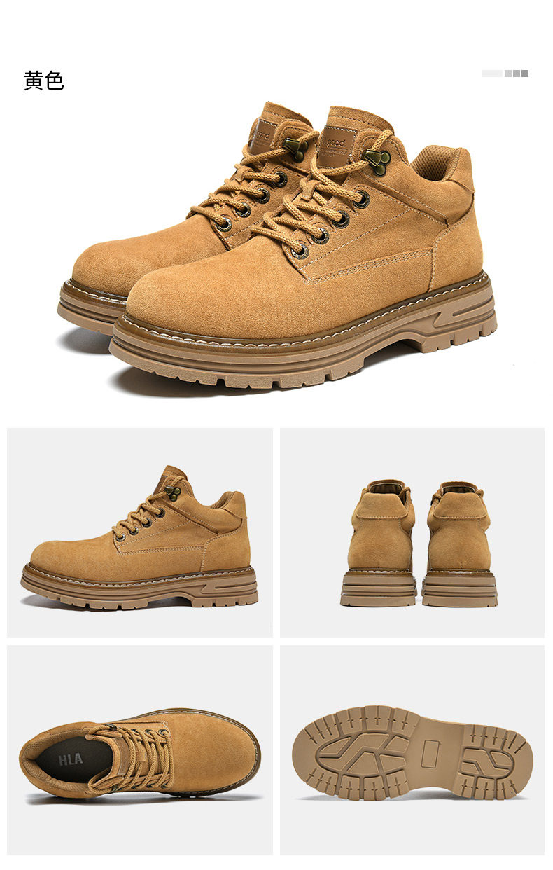 Heilan House Martin Boots for Men 2026 New High-Top Leather Shoes British Style Large Yellow Boots Desert Yellow Work Shoes for Men