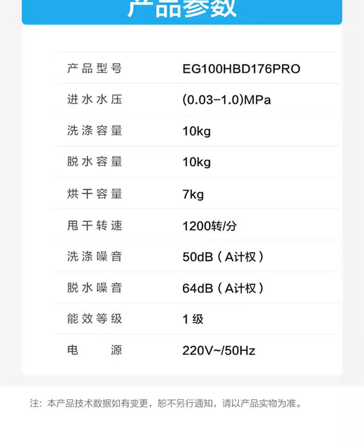 Color Classification Eg100Hbd176Pro Washing and Drying All in One,The Same Model Includes a 10-Year Extended Warranty on the Motor,The Same Model Includes a 10-Year Extended Warranty on the Entire Machine