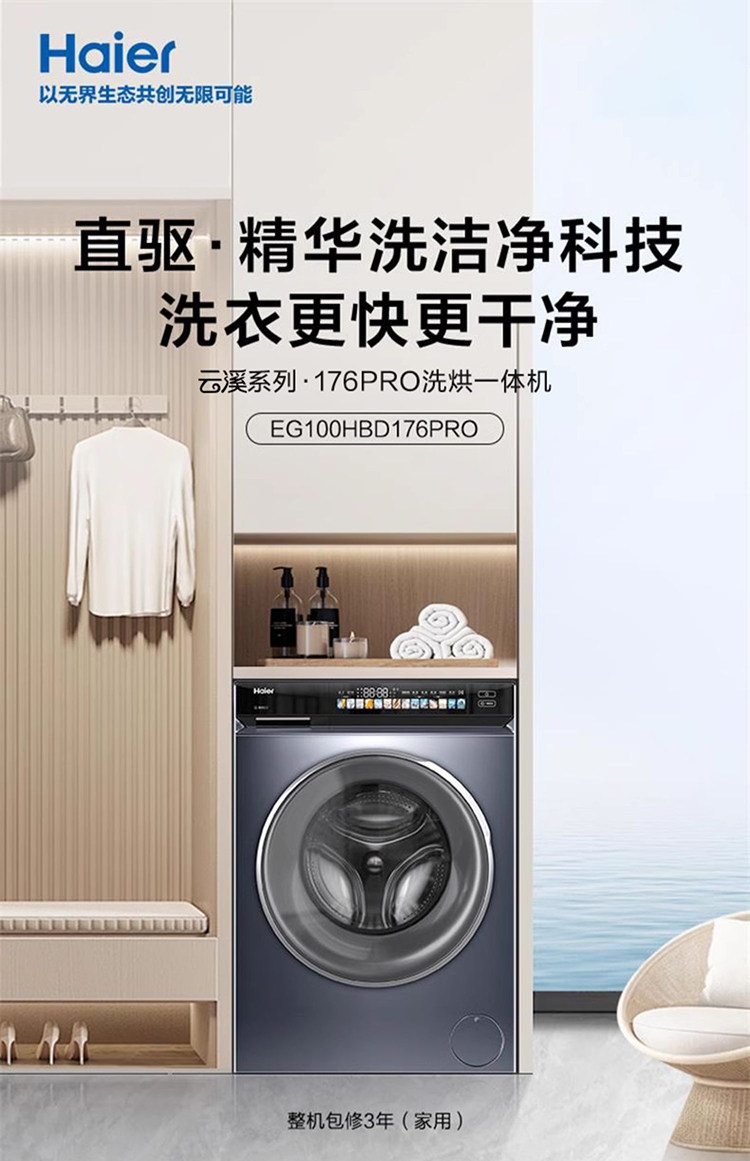 Haier/Haier Eg100Hbd176Pro Ultra-Thin Direct Drive Essence Washing and Drying Machine with 10kg Rollers