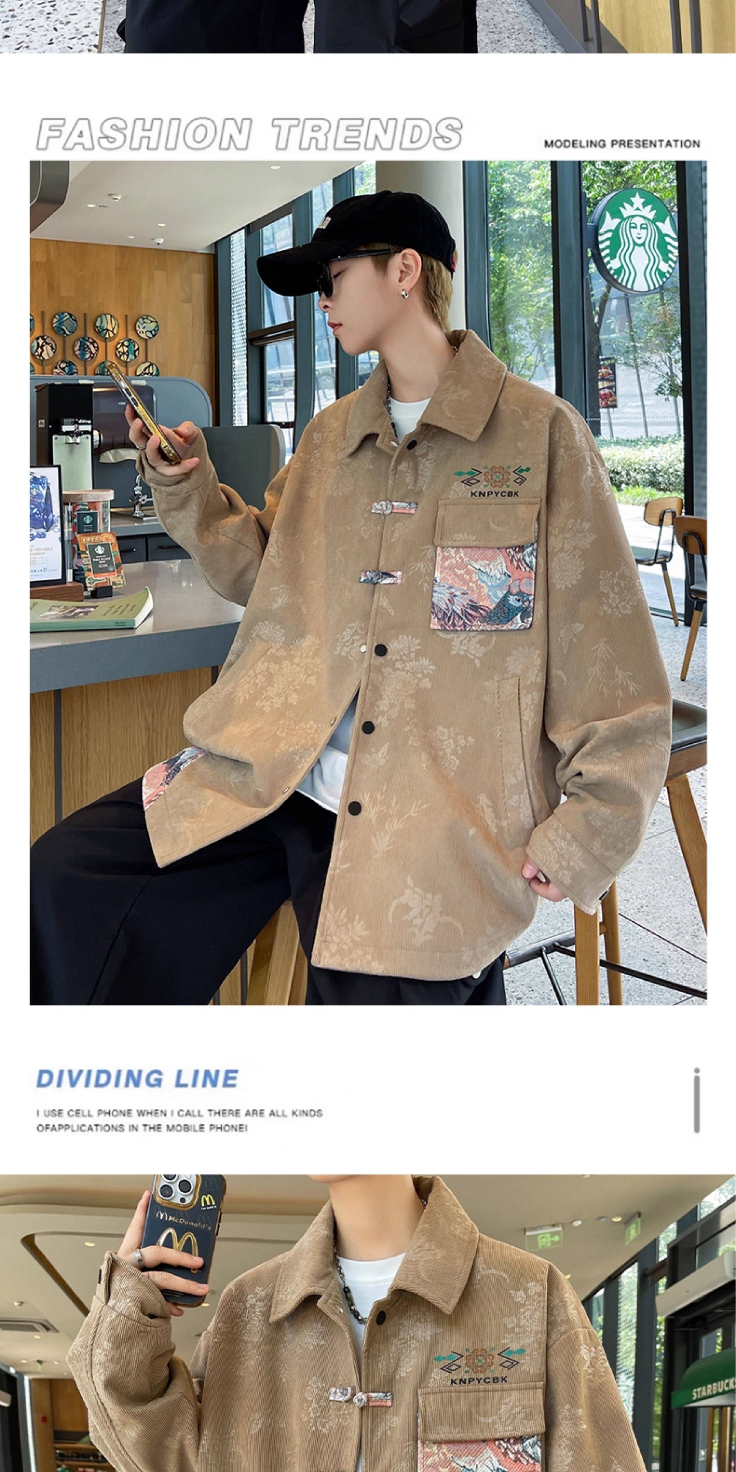 Spring and Autumn Youth Jackets Men's 2025 New National Fashion Ethnic Style High School Student Lapel Jackets Handsome Men