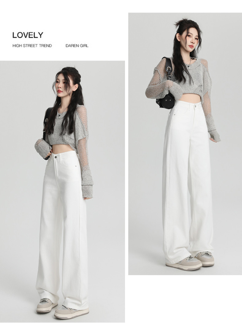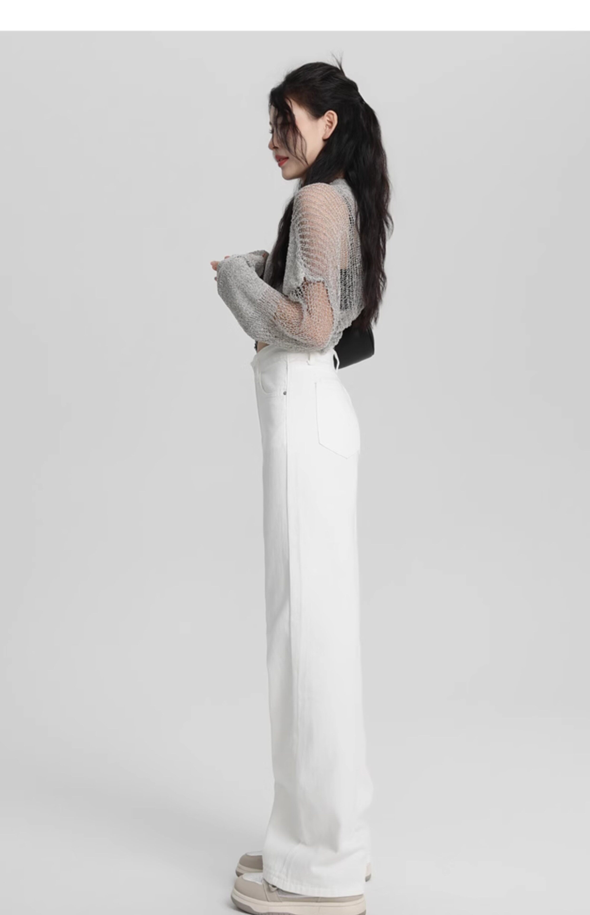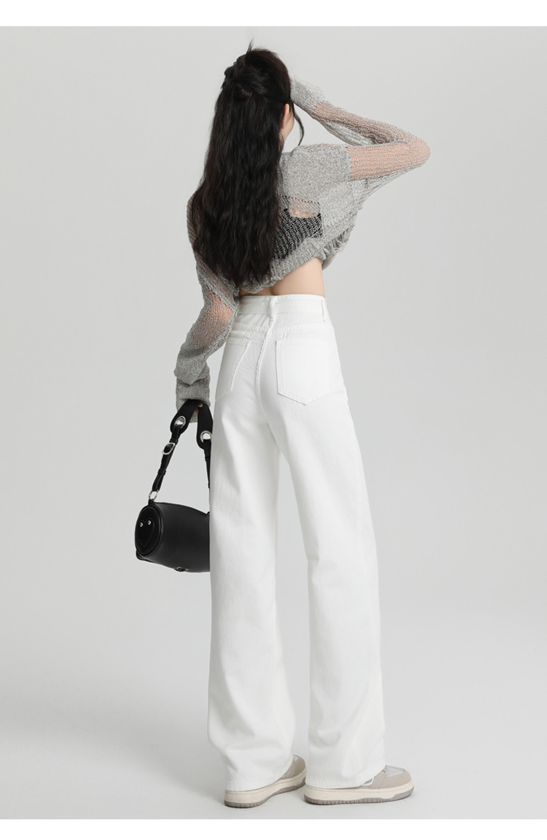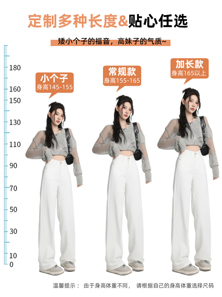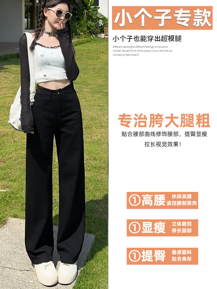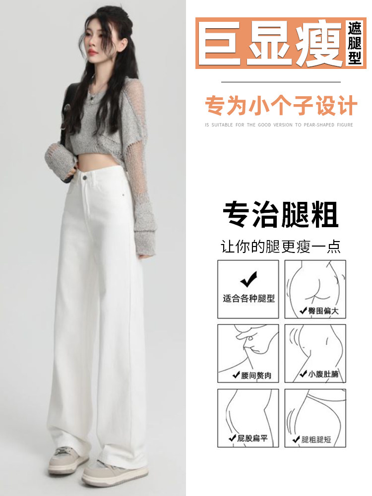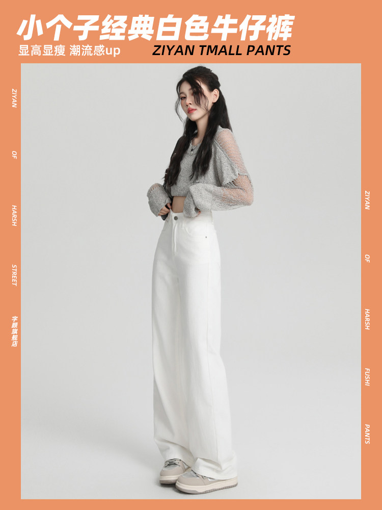 Small white jeans women's 2024 autumn new high-waisted straight wide-leg pants 150cm tall pants